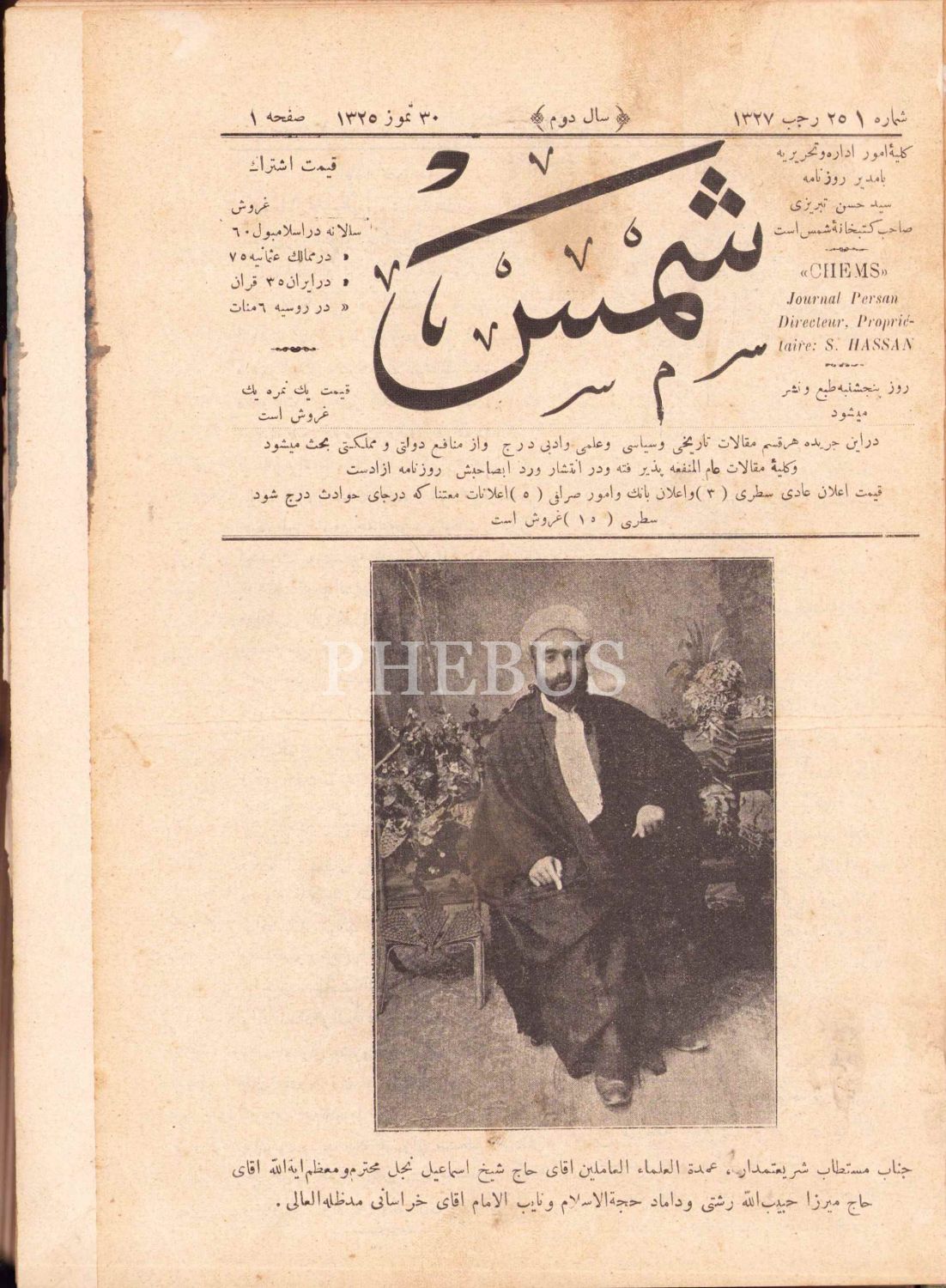 idaresinde Farsça basılan gazetenin yayımı yaklaşık I. Dünya Savaşı'na kadar