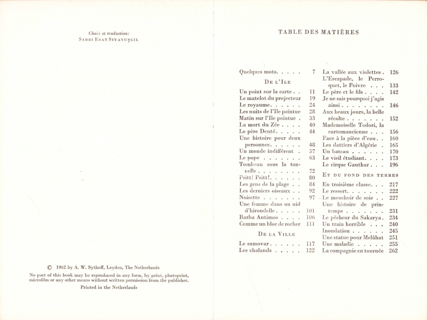 Sait Faik Abasıyanık'ın "Haritada Bir Nokta" ve daha birçok hikâyesinin Fransızcaya tercümesini ihtiva etmektedir