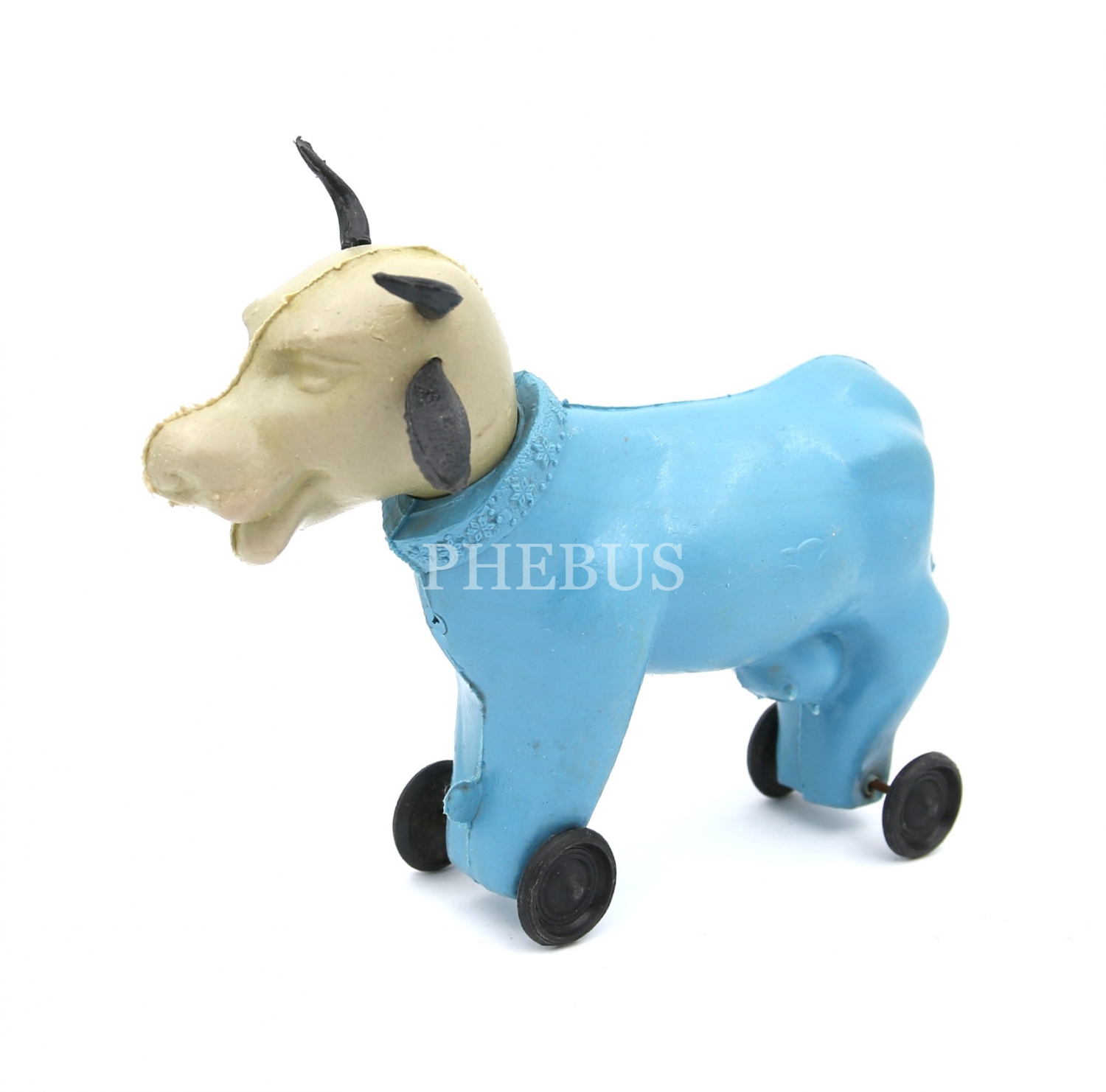 Türk malı, şişme plastik, tekerlekli oyuncak inek, 24x19x7 cm