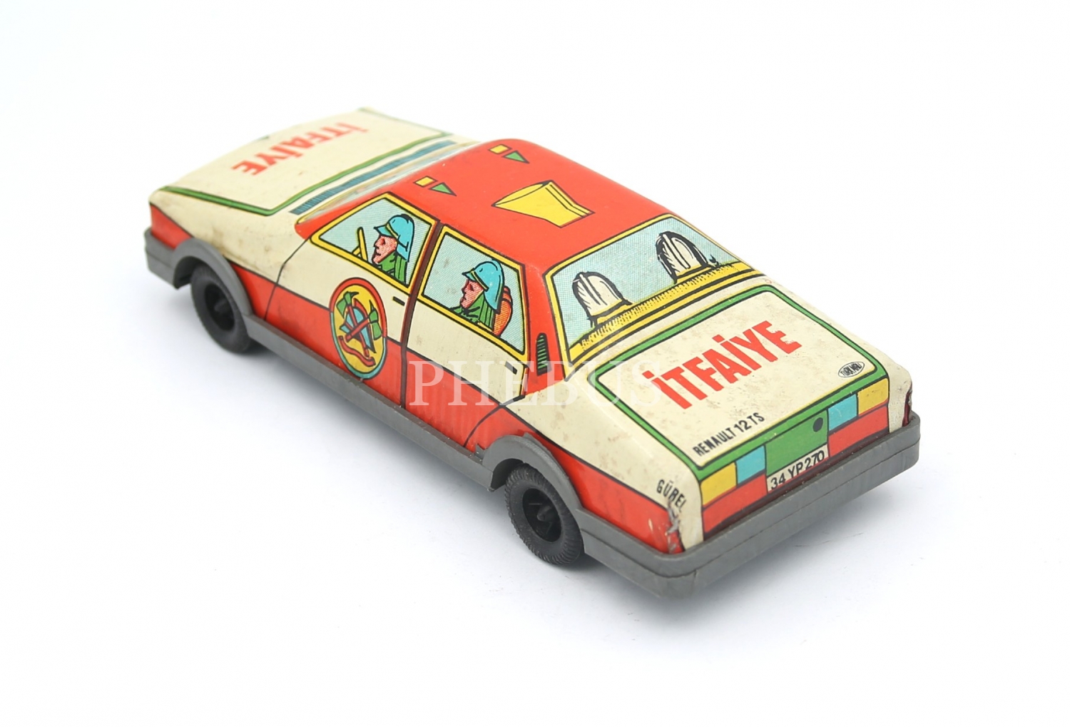 Türk malı, Gürel, Renault 12 TS, teneke itfaiye arabası, 7x18x6 cm