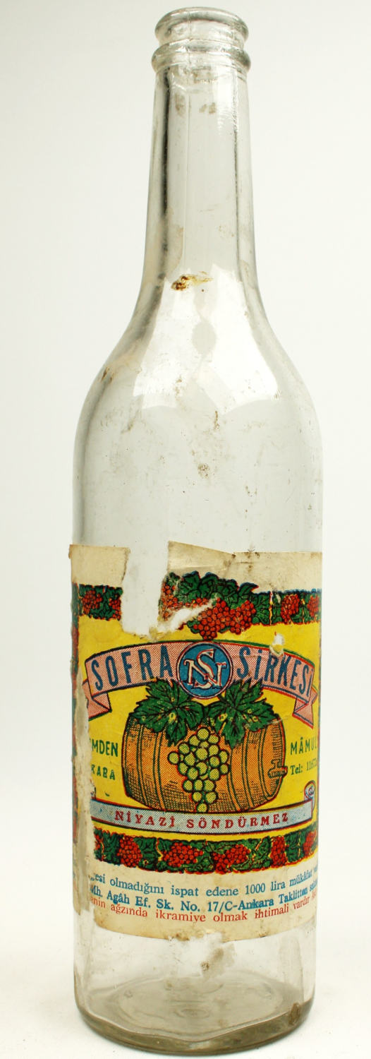 Sofra Sirkesi şişesi, Ankara adresli, etiketi haliyle, 28x6,5cm