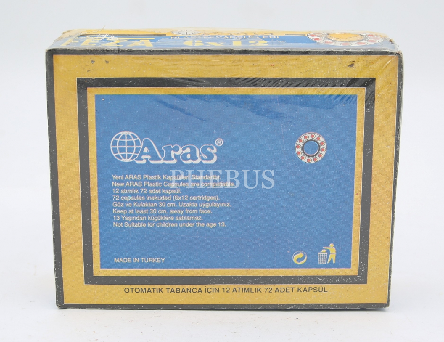 Türk malı, açılmamış kutusunda, Coşkunlar, Aras otomatik tabanca kapsülleri, 14x11x4 cm