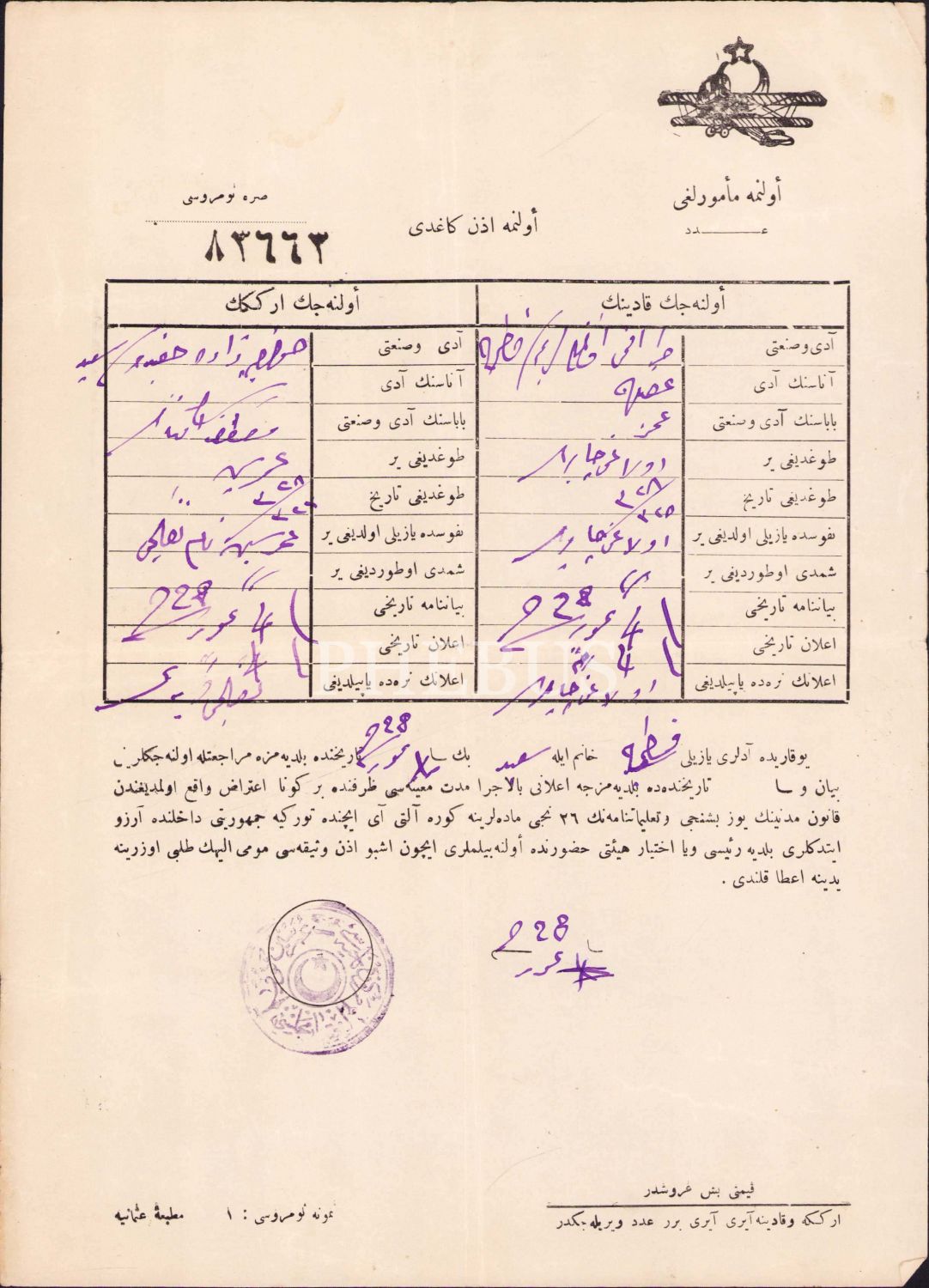 Osmanlıca evlenme izin kağıdı, 1928 tarihli, 20x28 cm