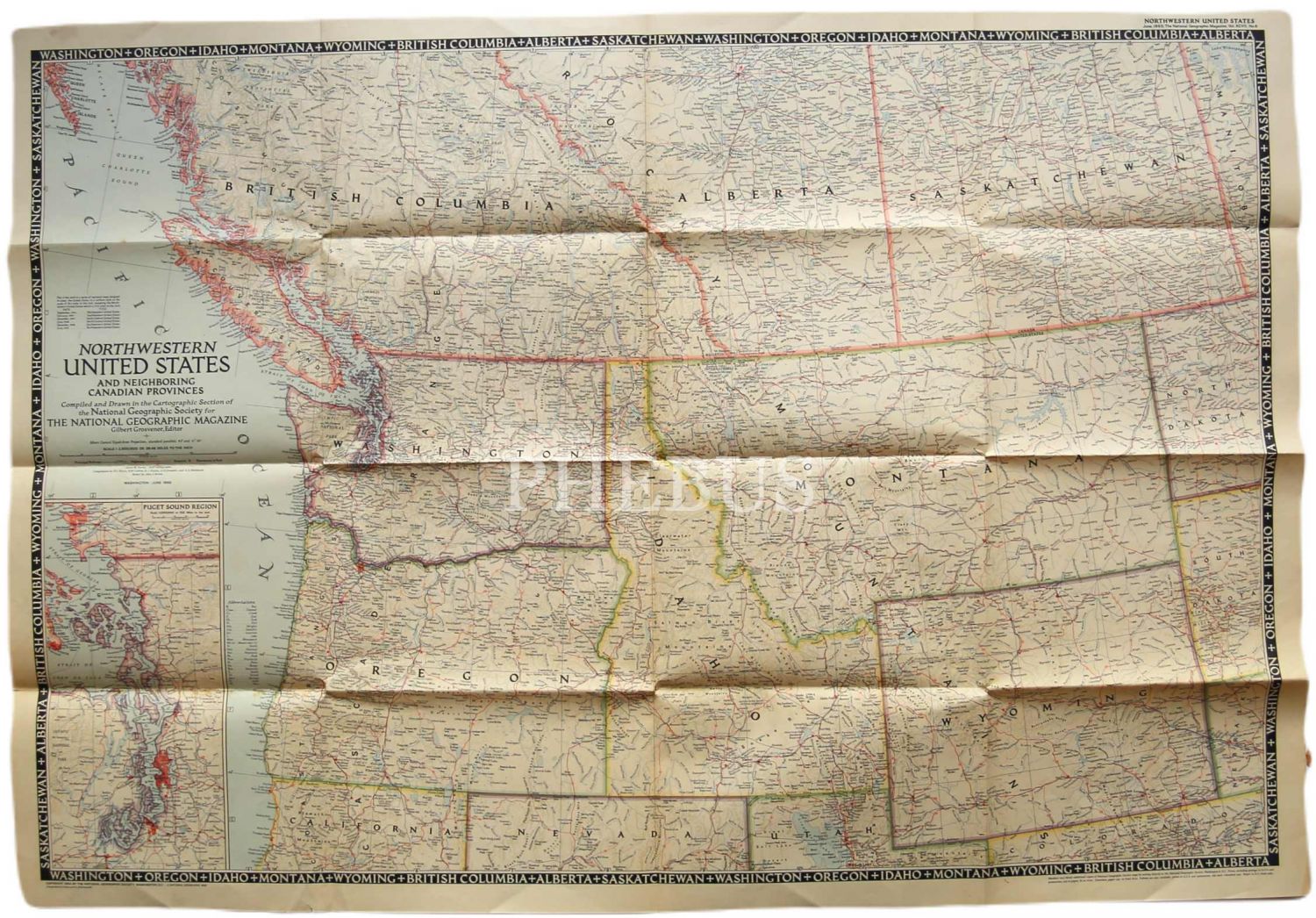 İngilizce harita, Kuzeybatı Amerika, baskı Washington, 1950, 92x60 cm