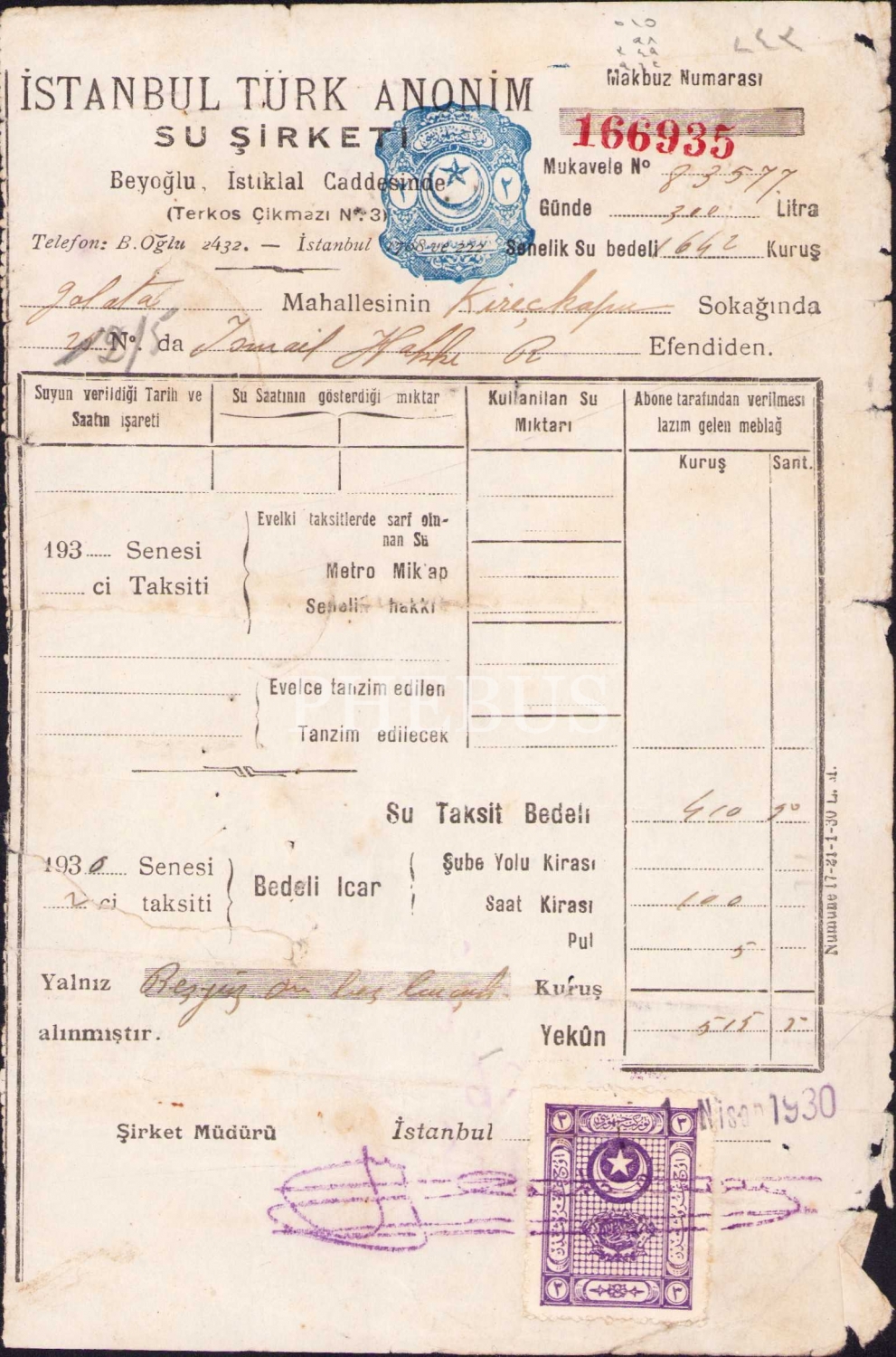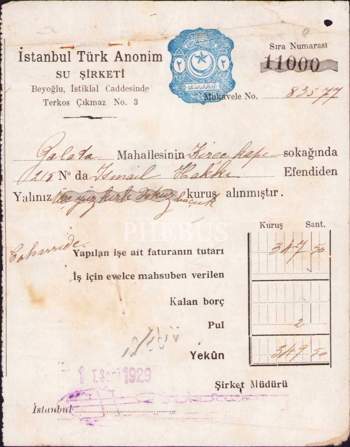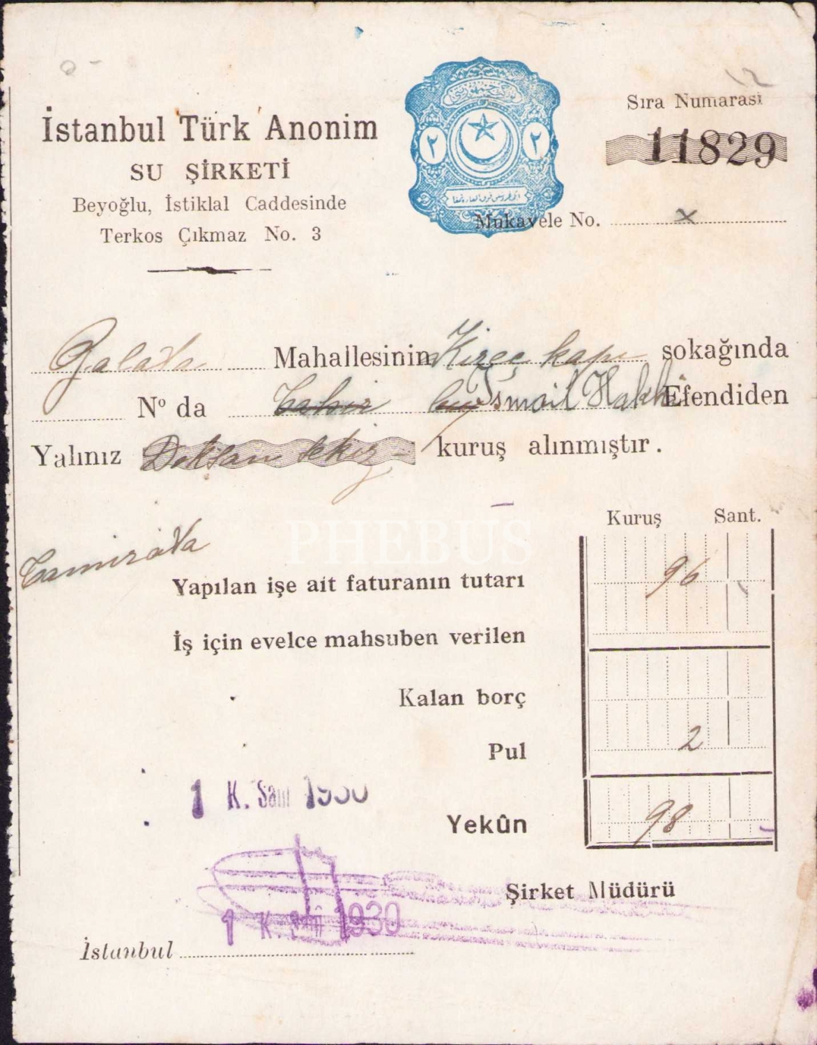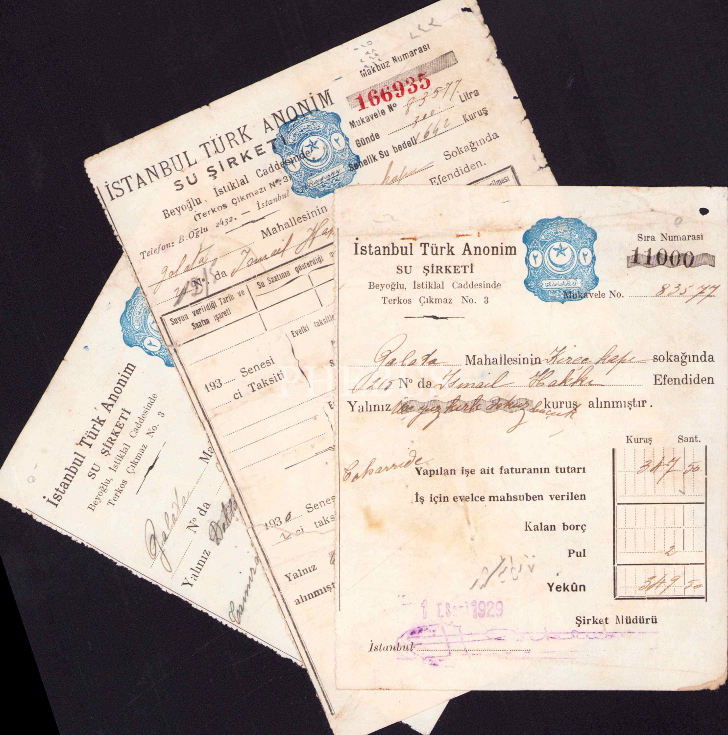 İstanbul Türk Anonim Su Şirketi antetli makbuz, 3 adet, 13x14 cm