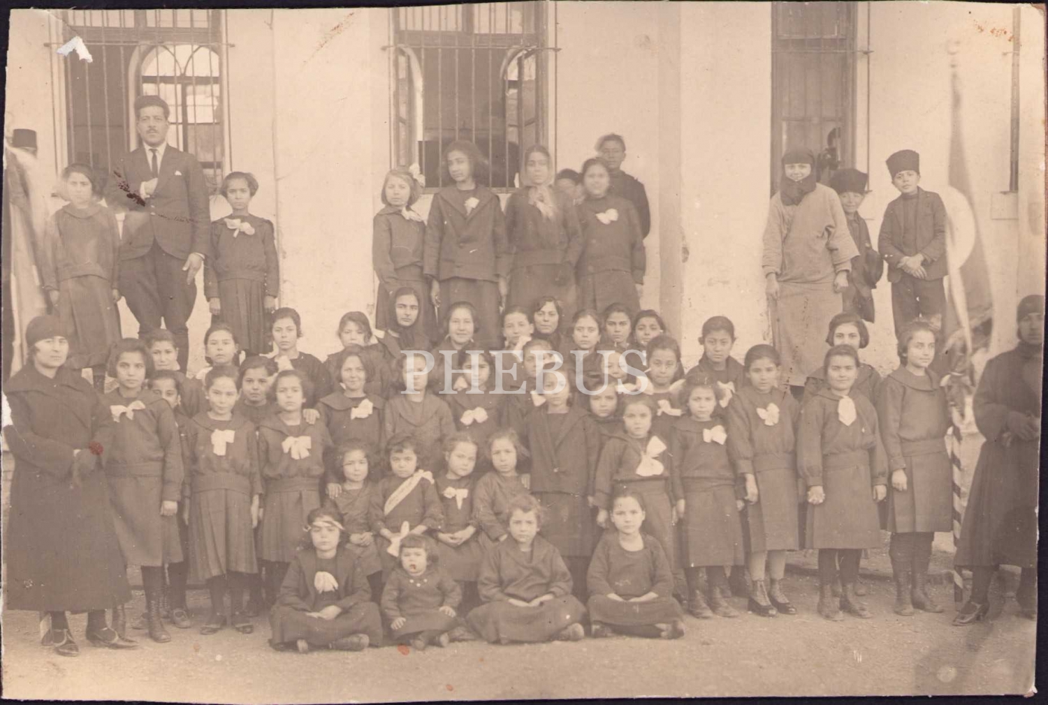 Erken dönem mektep önünde talebeler ve muallimleri hatıra, 15x9 cm