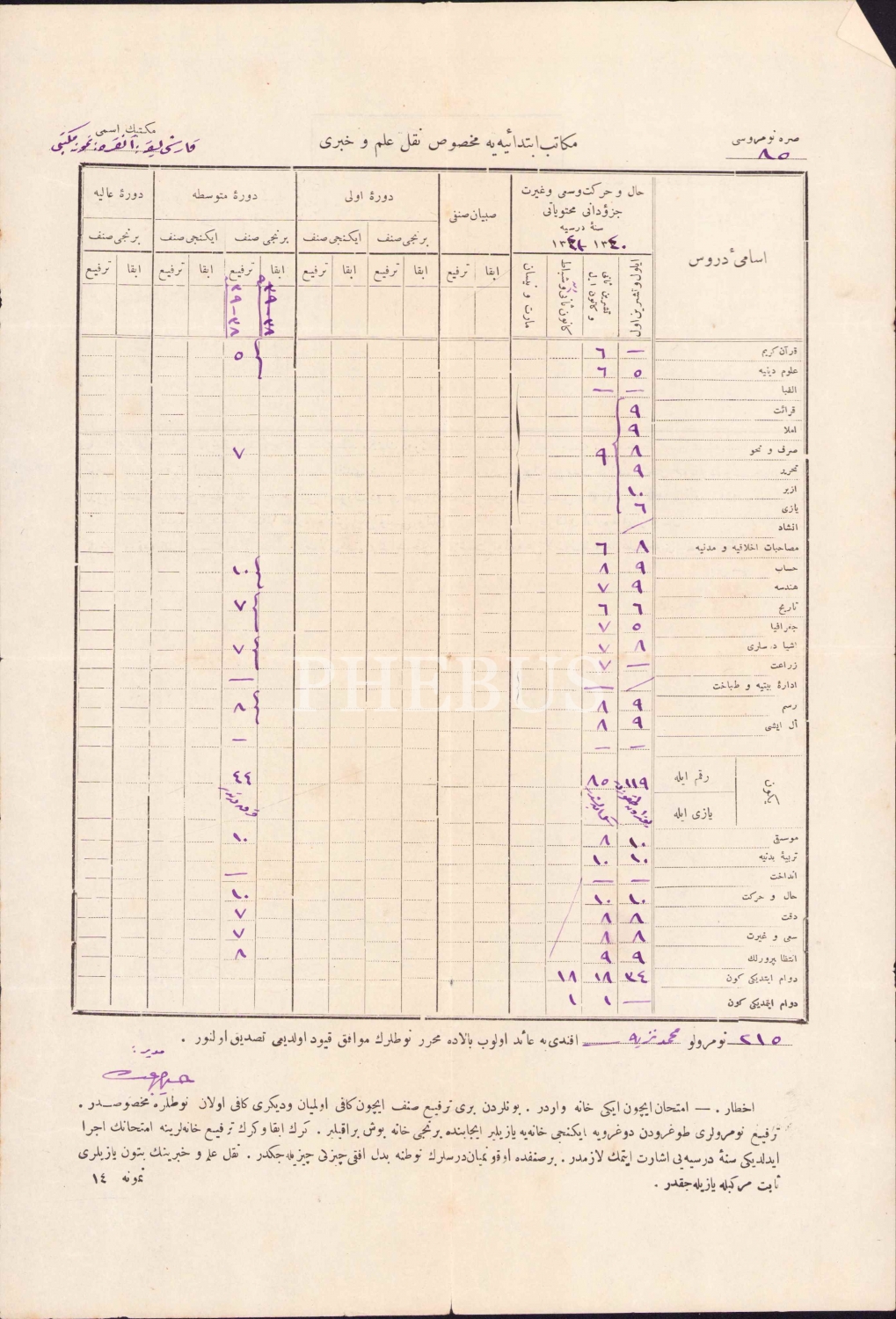 Osmanlıca nakil belgesi, Ankara Numune Mektebi, 1340 tarihli, 23x32 cm