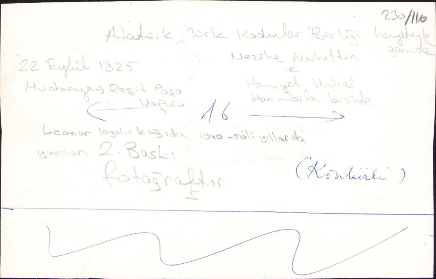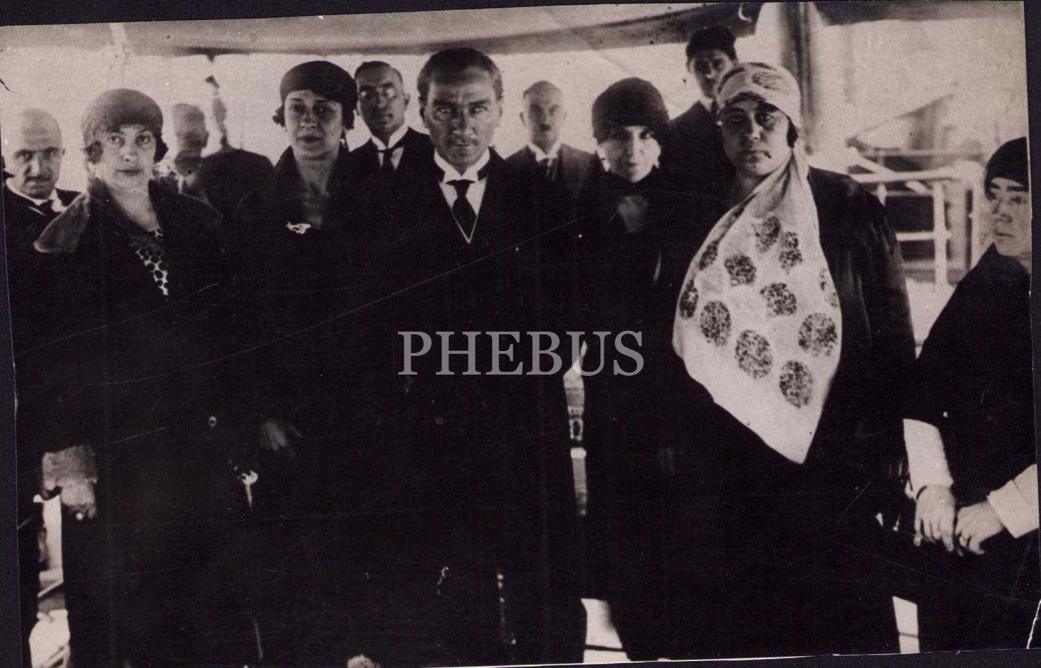 Atatürk, Türk Kadınlar Birliği heyeti Nezihe Muhittin ve Hamiyet Hulusi Hanımlarla birlikte Mudanya Reşit Paşa vapurunda, 1940 - 50 yıllara ait 2. baskı fotoğraf, 17x10 cm