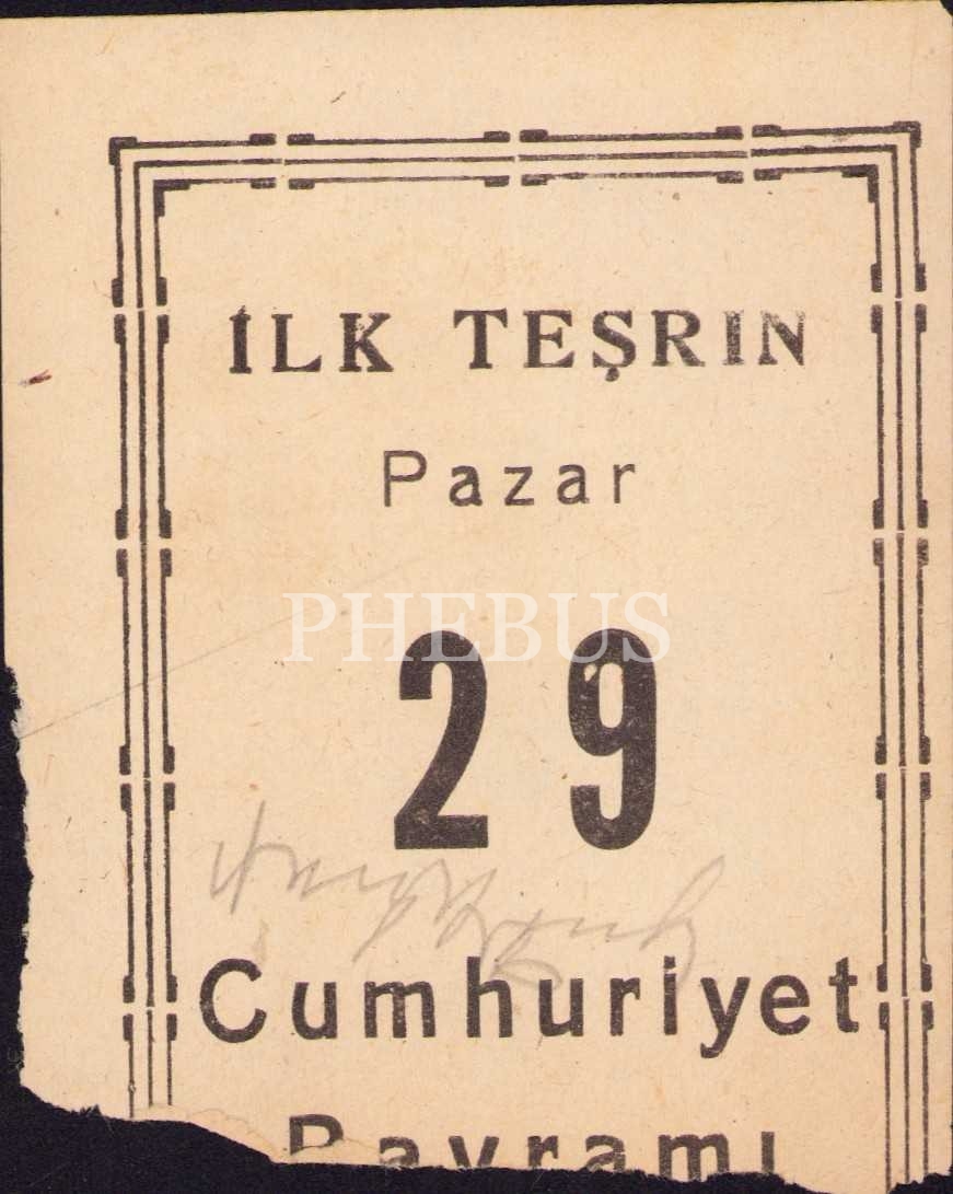 29 Ekim Cumhuriyet Bayramı - Pazar takvim, alt tarafı yırtık, 7x7 cm