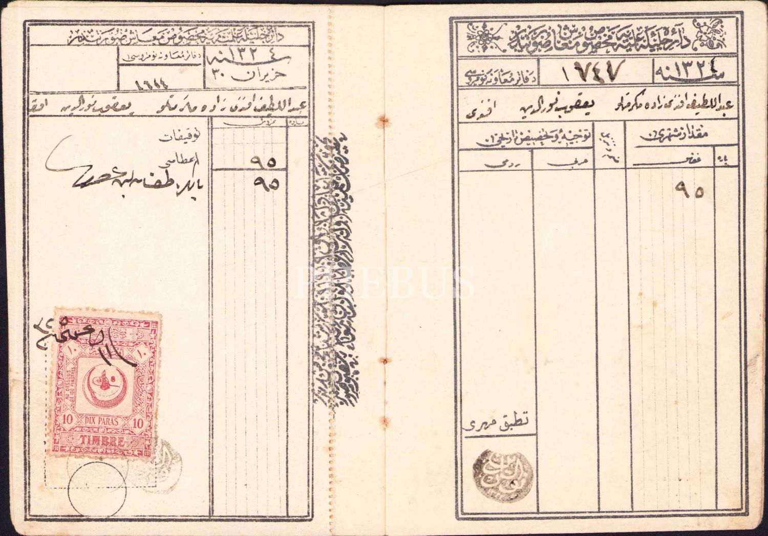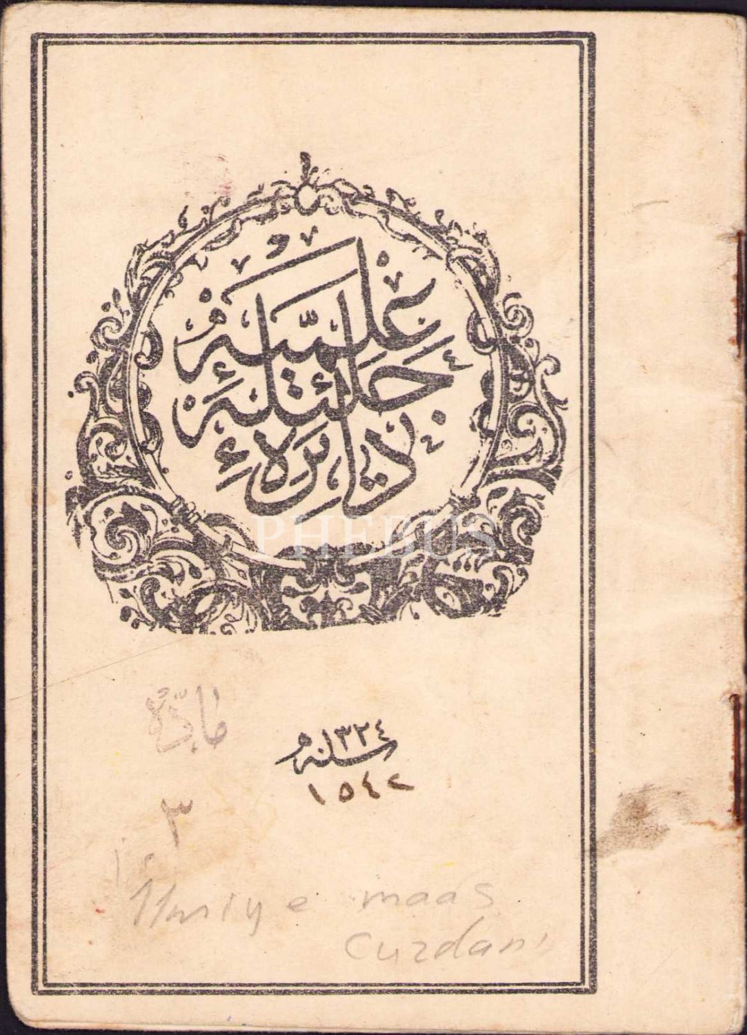 Osmanlıca ilmiye maaş cüzdanı, 1325 tarihli, 9x13 cm