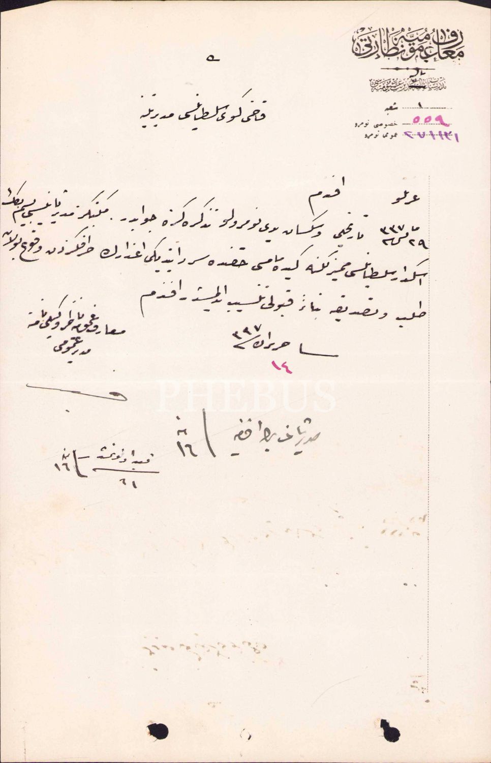 Osmanlıca Maarif-i Umumiye Nezareti antetli Kadıköy Sultani müdüriyetine gönderilmil belge, 1338 tarihli, 16x26 cm