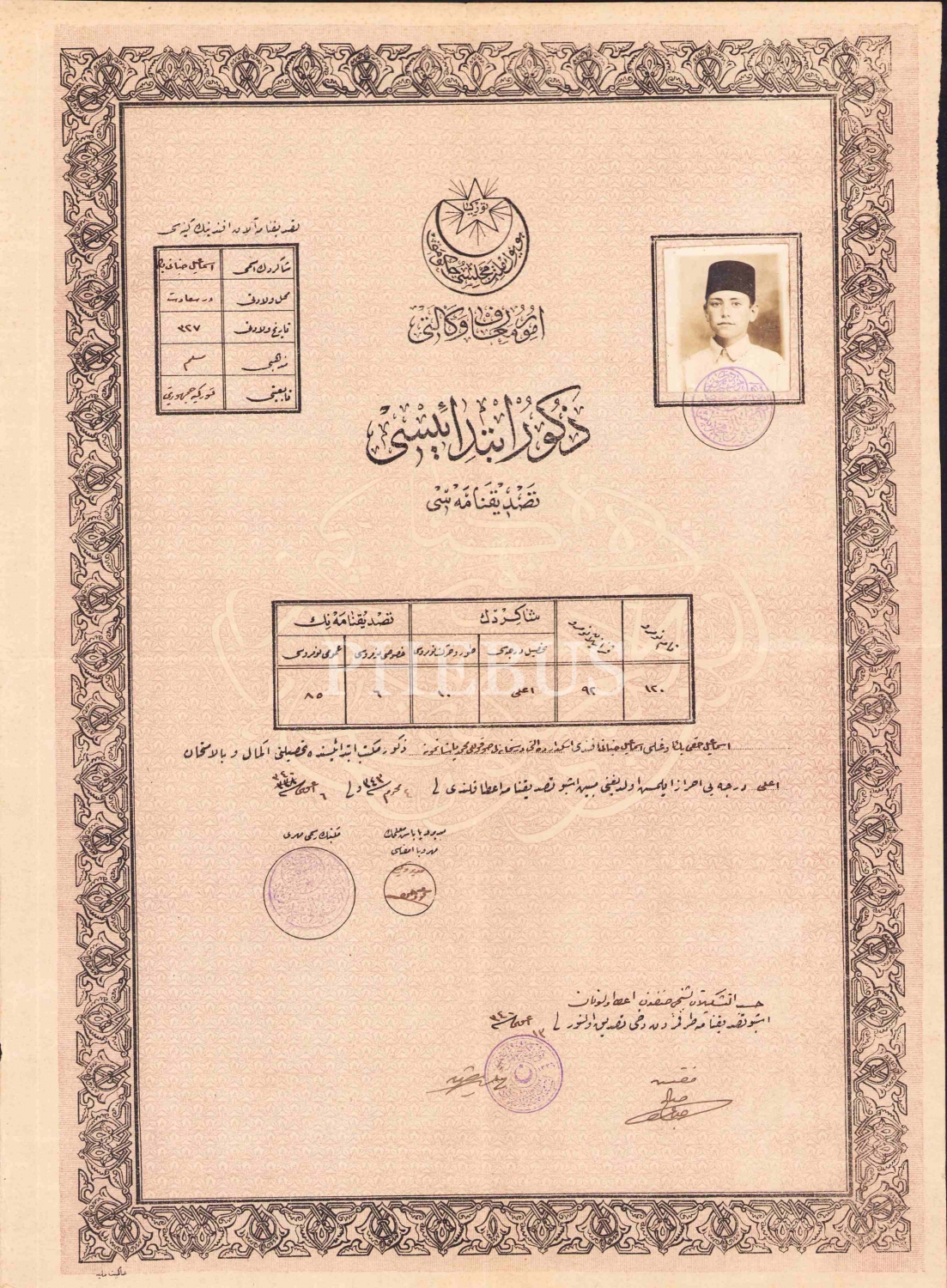 Osmanlıca tasdikname, İstanbul Üsküdar'da 6 Dershaneli Sokullu Mehmed Paşa Numune Zükur Mektebi, 1343 tarihli, 30x40 cm