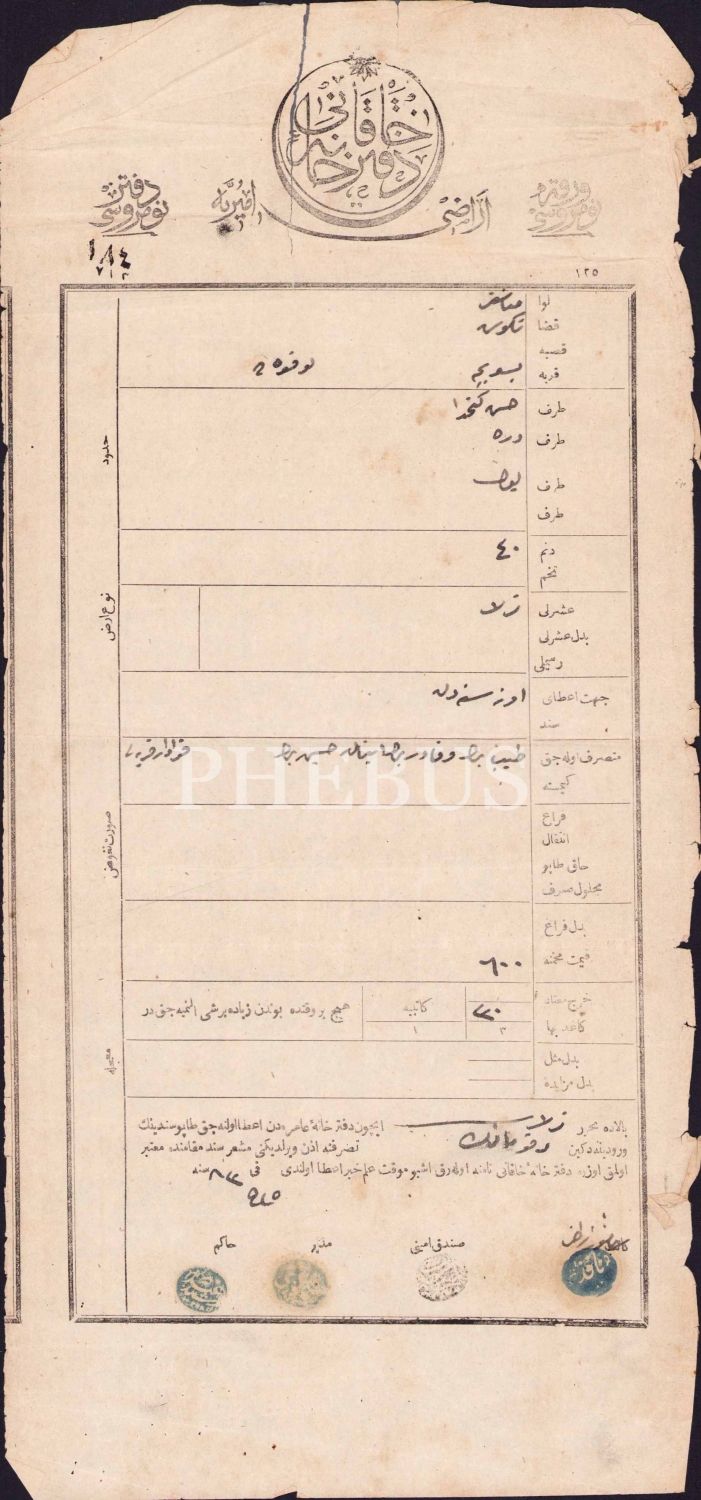 Osmanlı miri arazi tapusu, Manastır, haliyle, 19x41 cm
