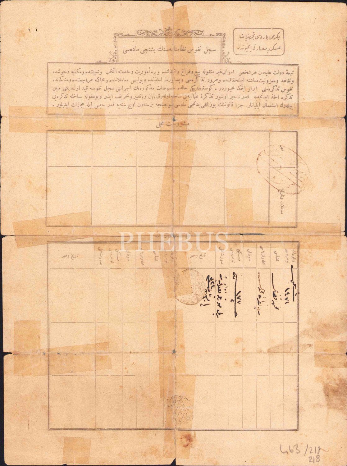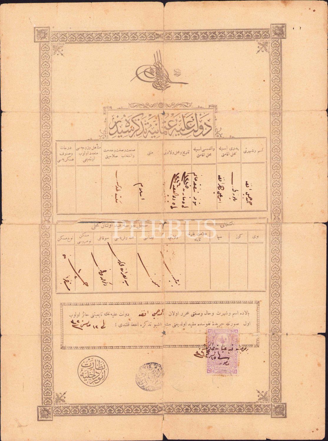 Osmanlıca nüfus tezkiresi, 1320 tarihli, haliyle, 24x32 cm
