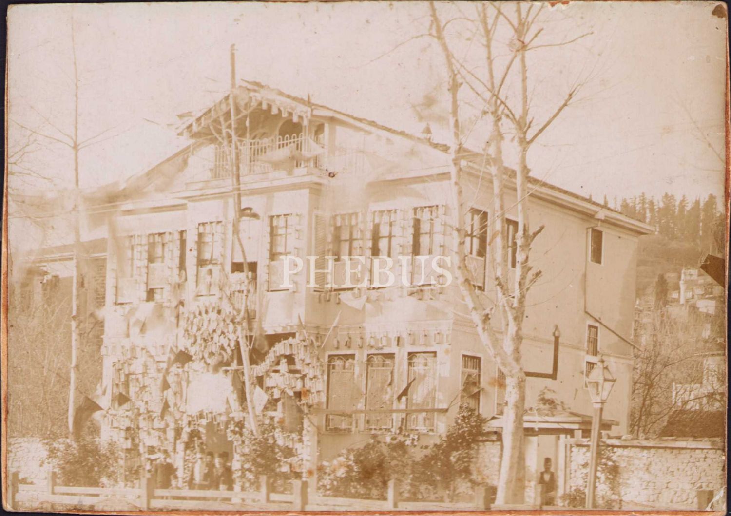 Osmanlı dönemi konak önünde paşa ve fesli tipler,15x11 cm