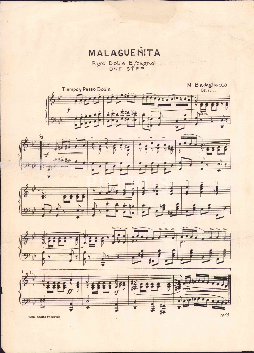 Constantinople baskı, Malacuenita Passo Doble Espagnol One Step, M. Badagliacca, editör J. D'Andria damgalı, 24x34 cm