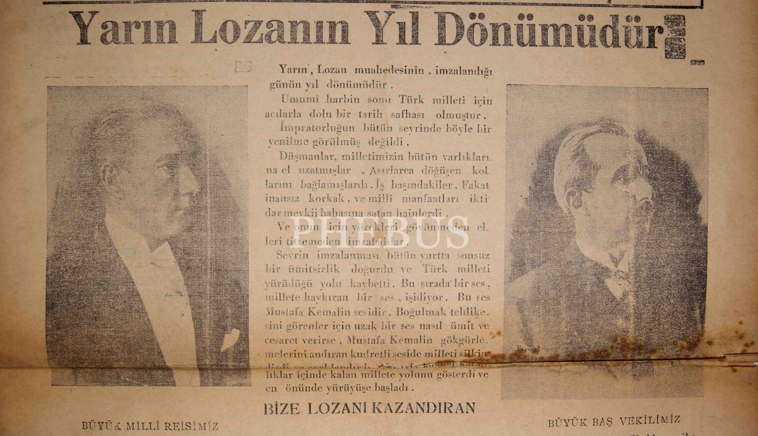 Fırat gazetesi, 23 Temmuz 1934, "Yarın Lozanın Yıldönümüdür", Atatürk - İsmet İnönü görselli, 4 sayfa, 30x48 cm