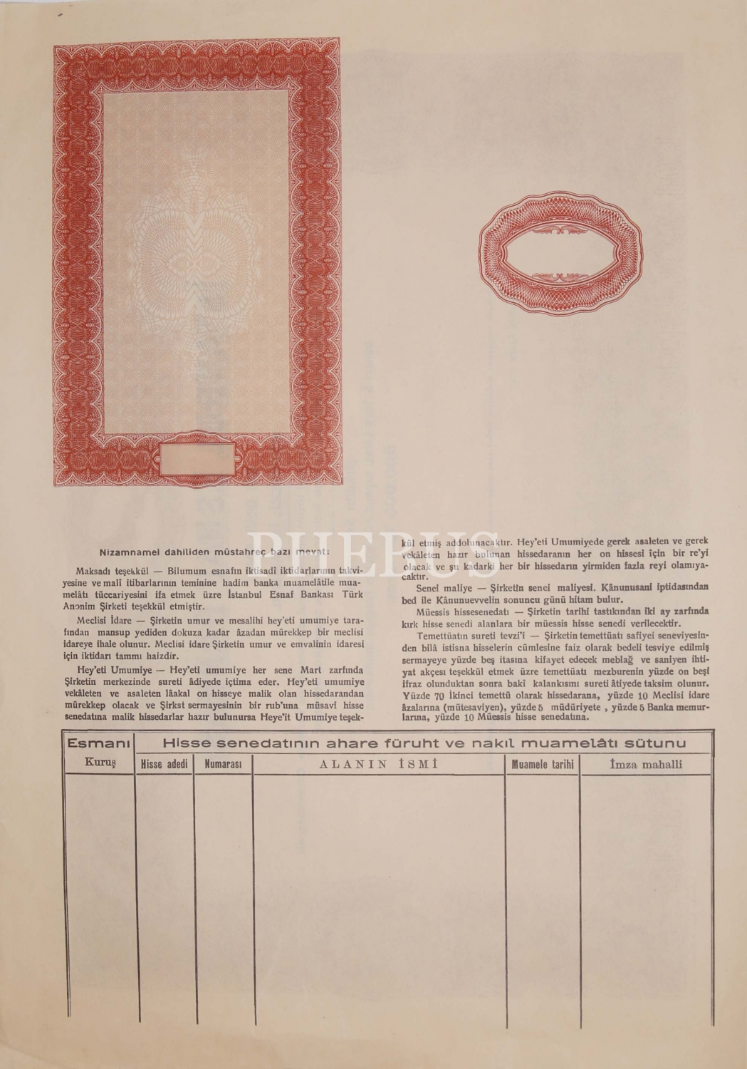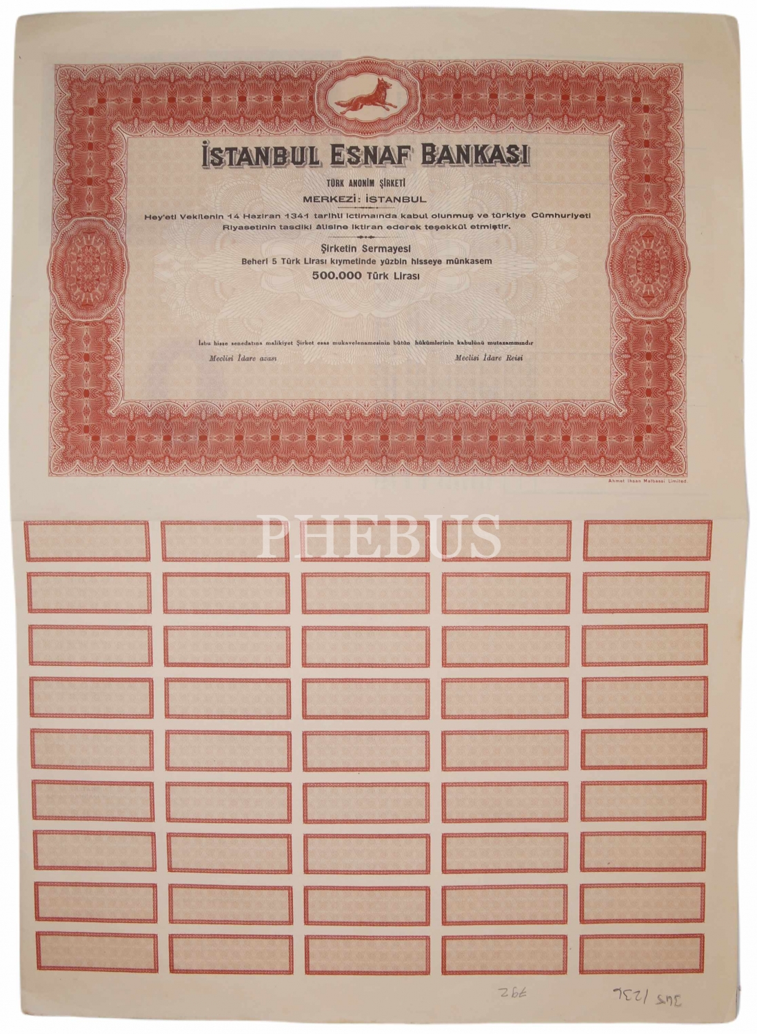 İstanbul Esnaf Bankası Türk Anonim Şirketi hisse senedi, 34x48 cm