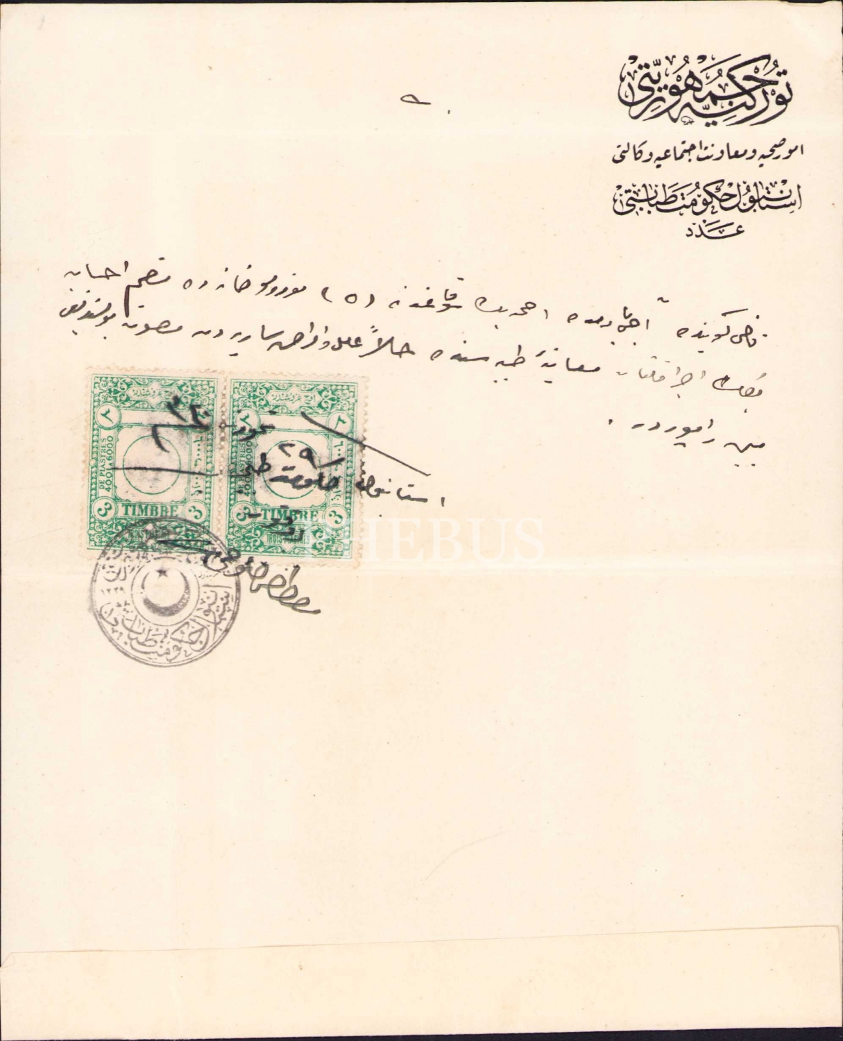 Osmanlıca Türkiye Cumhuriyeti İstanbul Hükümet Tababeti antetli, 1340 tarihli dokuman, 16x19 cm