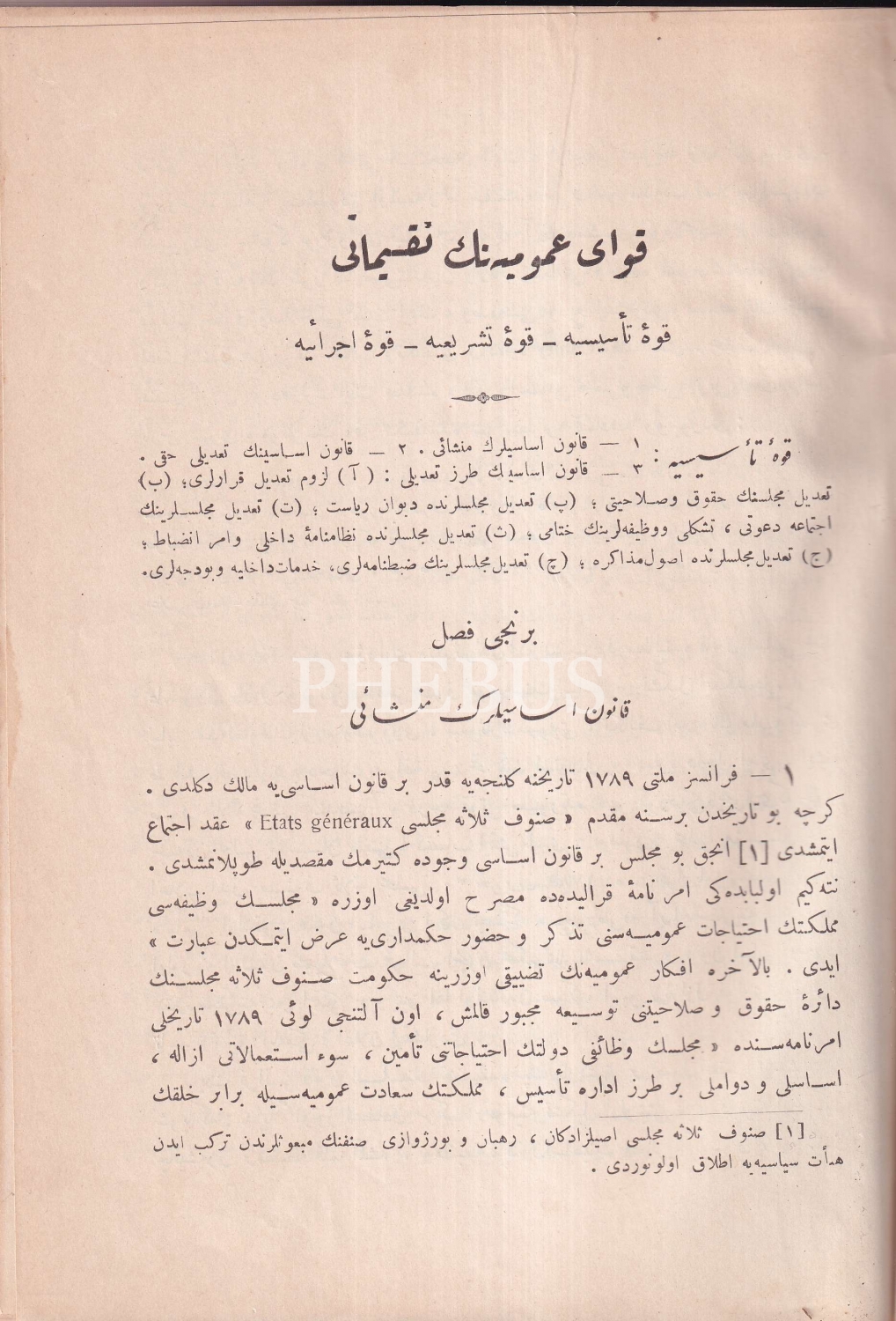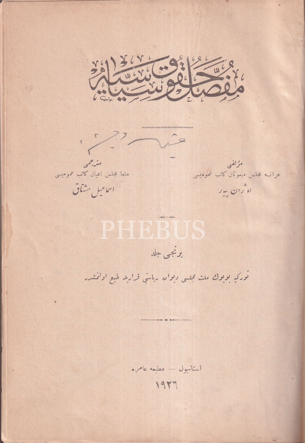 Osmanlıca, Mufassal Hukuk-u Siyasiye 1. cilt, Eugéne, Pierre, Çeviren: İsmail Müştak [Mayokan]; 1926, Amire Matbaası, İstanbul, ÖZEGE; 13989, 24x18 cm