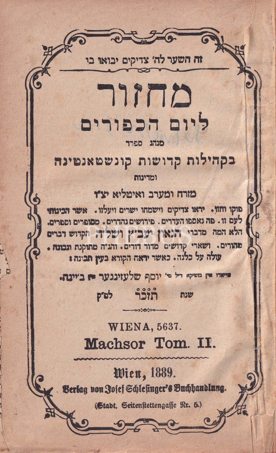 İbranice kitap, 1889 Viyana baskısı, 169 sayfa, 18x12 cm