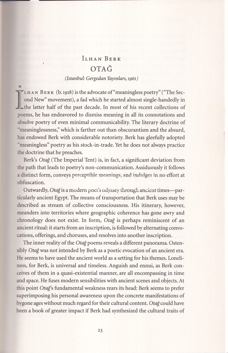 İthaf "Aziz dostlarım Nebahat ve Necdet Ok için en iyi dileklerle ve sevgilerle. Ankara 4 Ocak 2007" şeklindedir