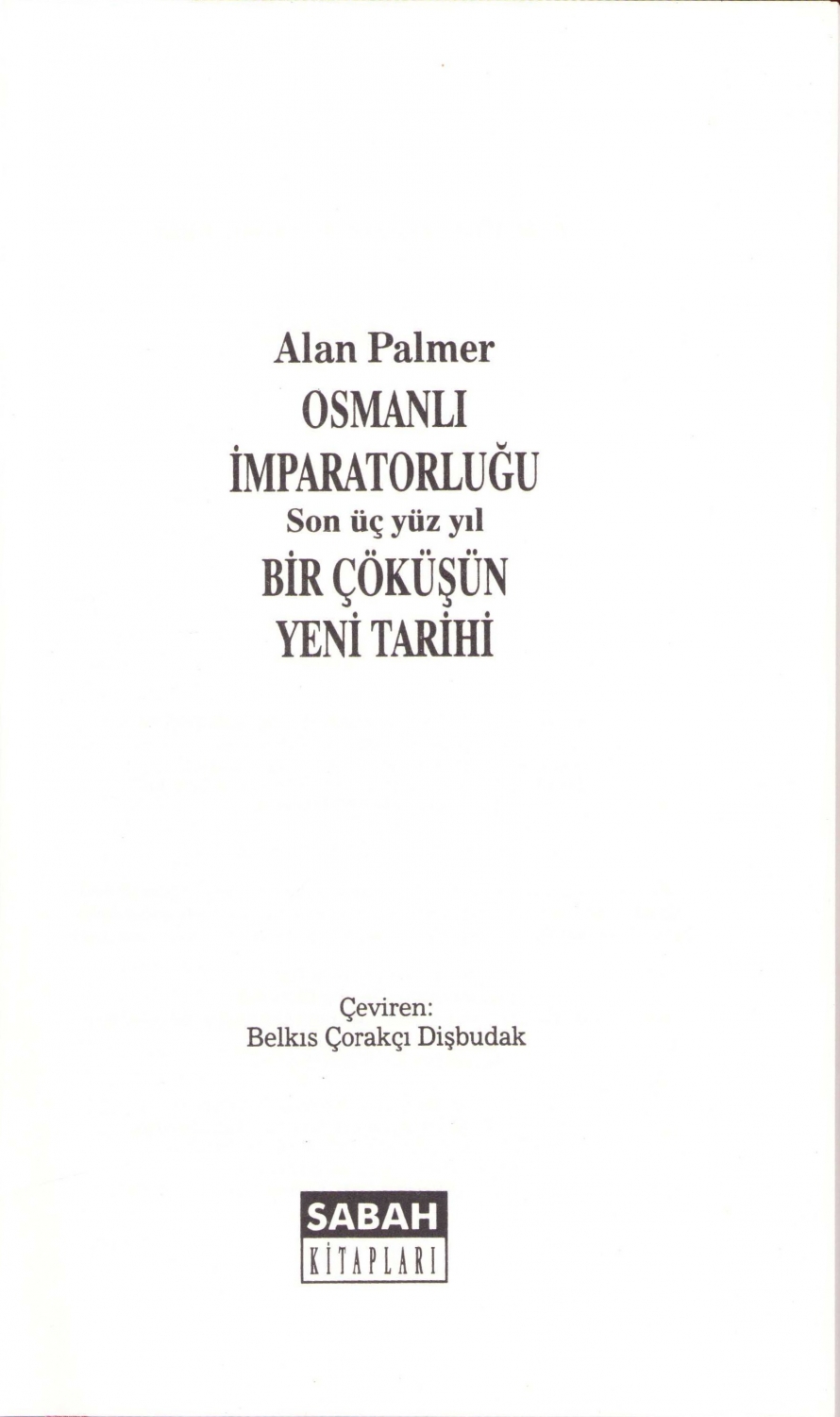 Osmanlı İmparatorluğu Son Üç Yüz Yıl Bir Çöküşün Yeni Tarihi, Alan Palmer, 1995, 323 sayfa