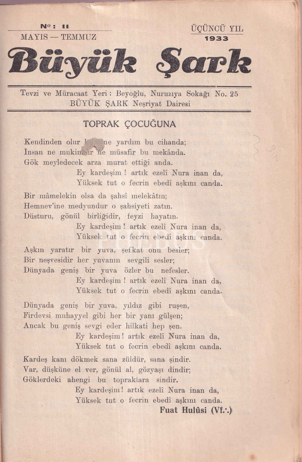 Büyük Şark dergisi, sayı 11, 1933, 49 sayfa, 27x16 cm