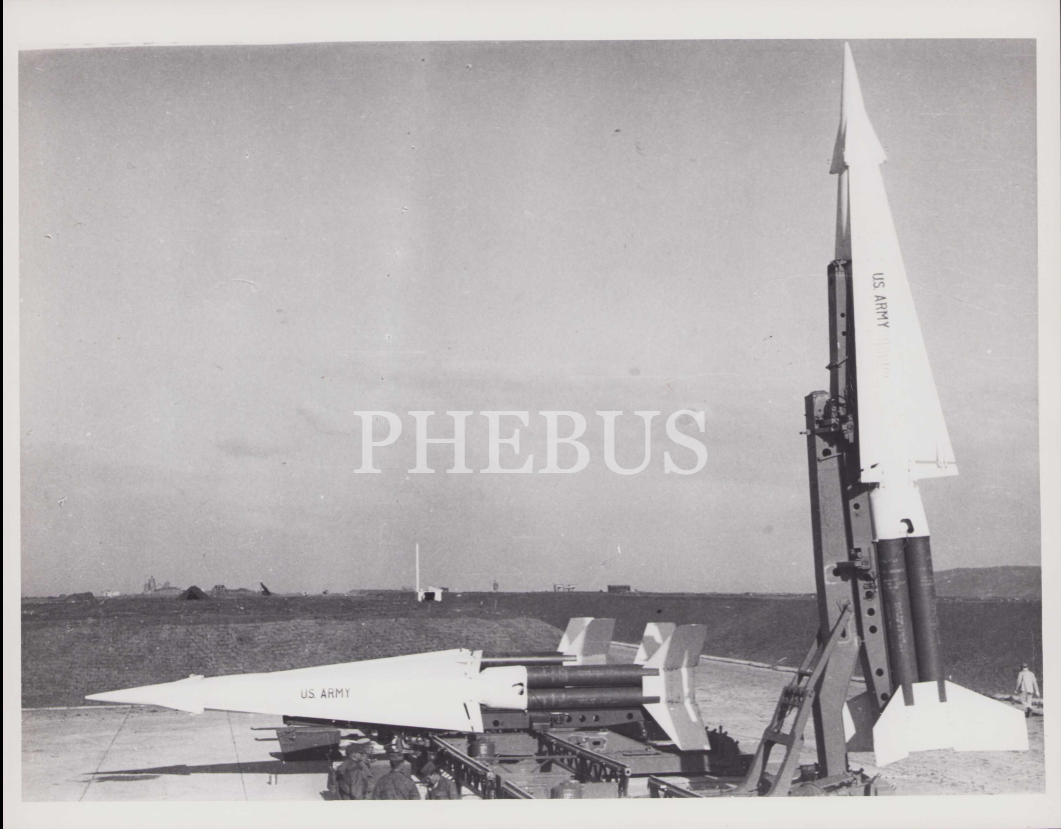 Üzerinde ABD Ordusu yazılı füzeler ile bir grup askeri personel, 26x21cm