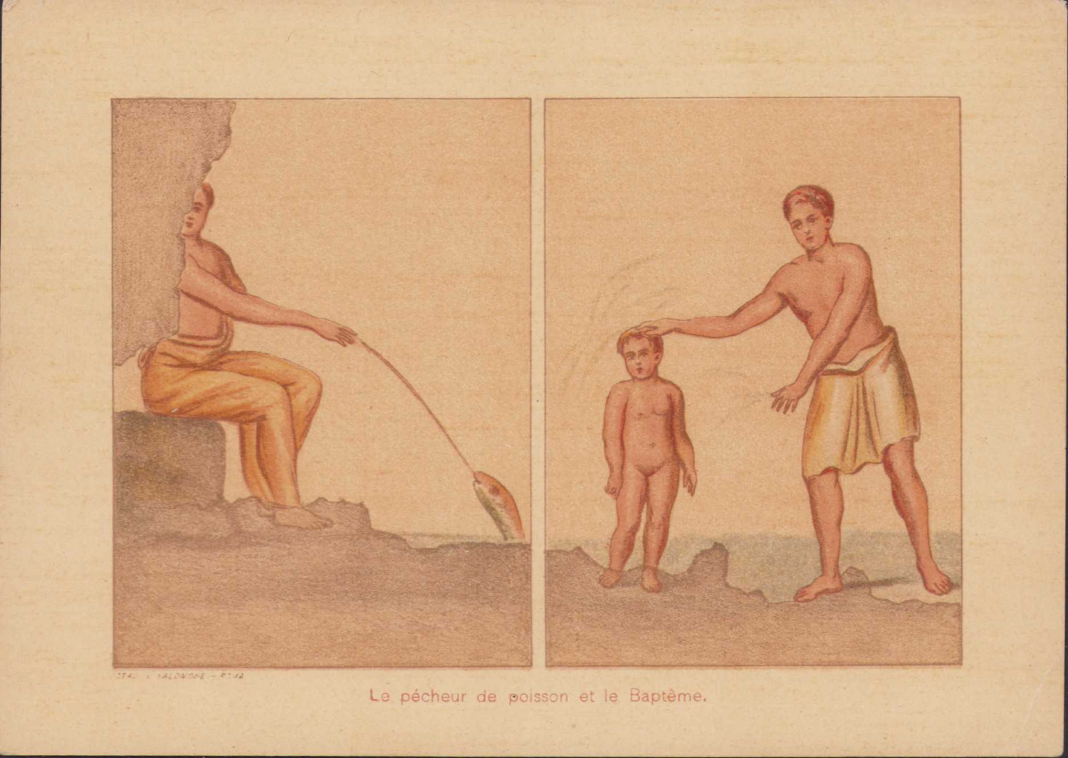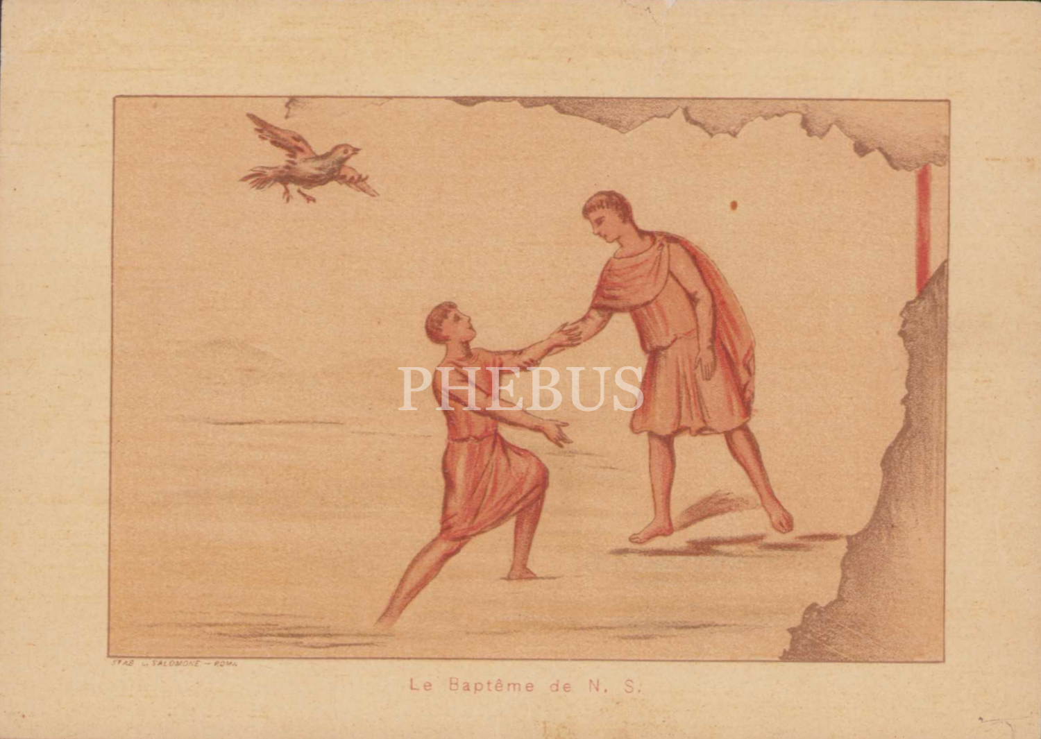 Vaftiz konulu, dini tematik kartlar, 5 adet, Roma baskısı, Fransızca yazılı, 16x11cm