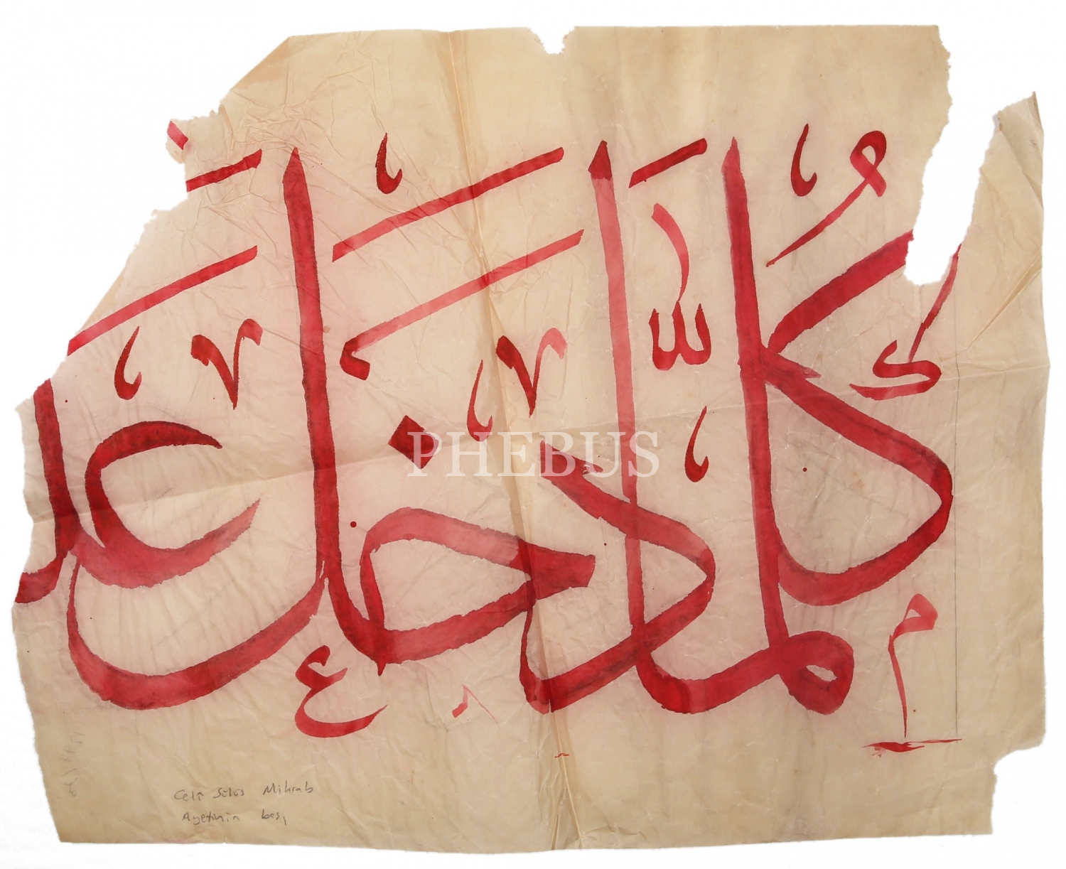 Celi Sülüs istif Mihrap Ayeti'nin başı, Hattat Halim Özyazıcı terekesinden, haliyle, 44x35 cm