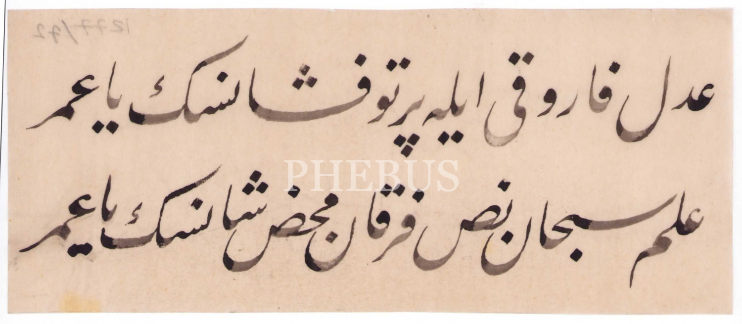 Talik Beyit, "Adl-i Faruki ile pertev-feşansın sen ey Ömer", Hattat Halim Özyazıcı terekesinden, 20x9 cm