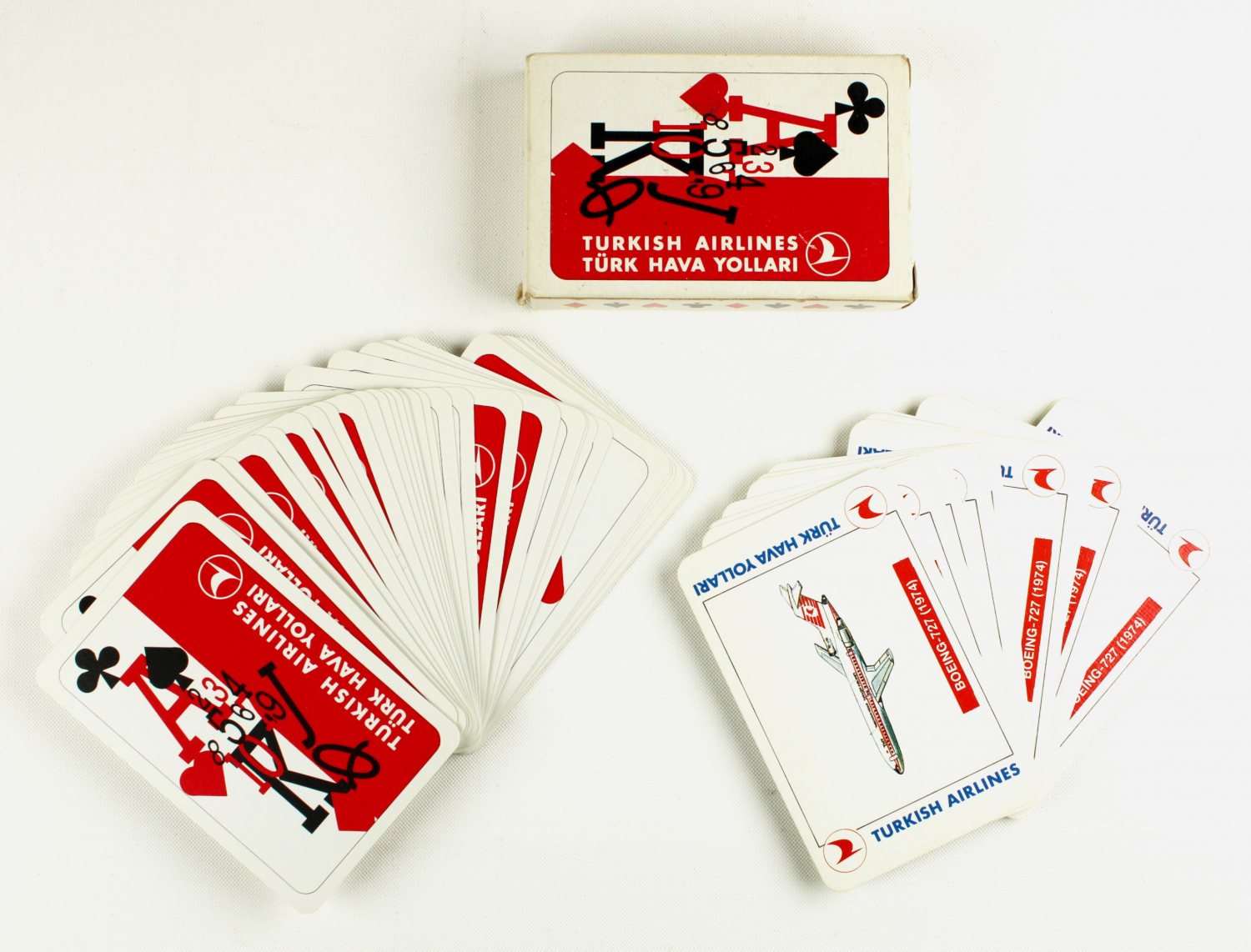 Türk Hava Yolları (THY) üretim oyun kartları, bir yüzünde THY'nin Boeing-727 (1974) model uçağının görseli var, 1 deste, kutusunda, 9x6,5cm