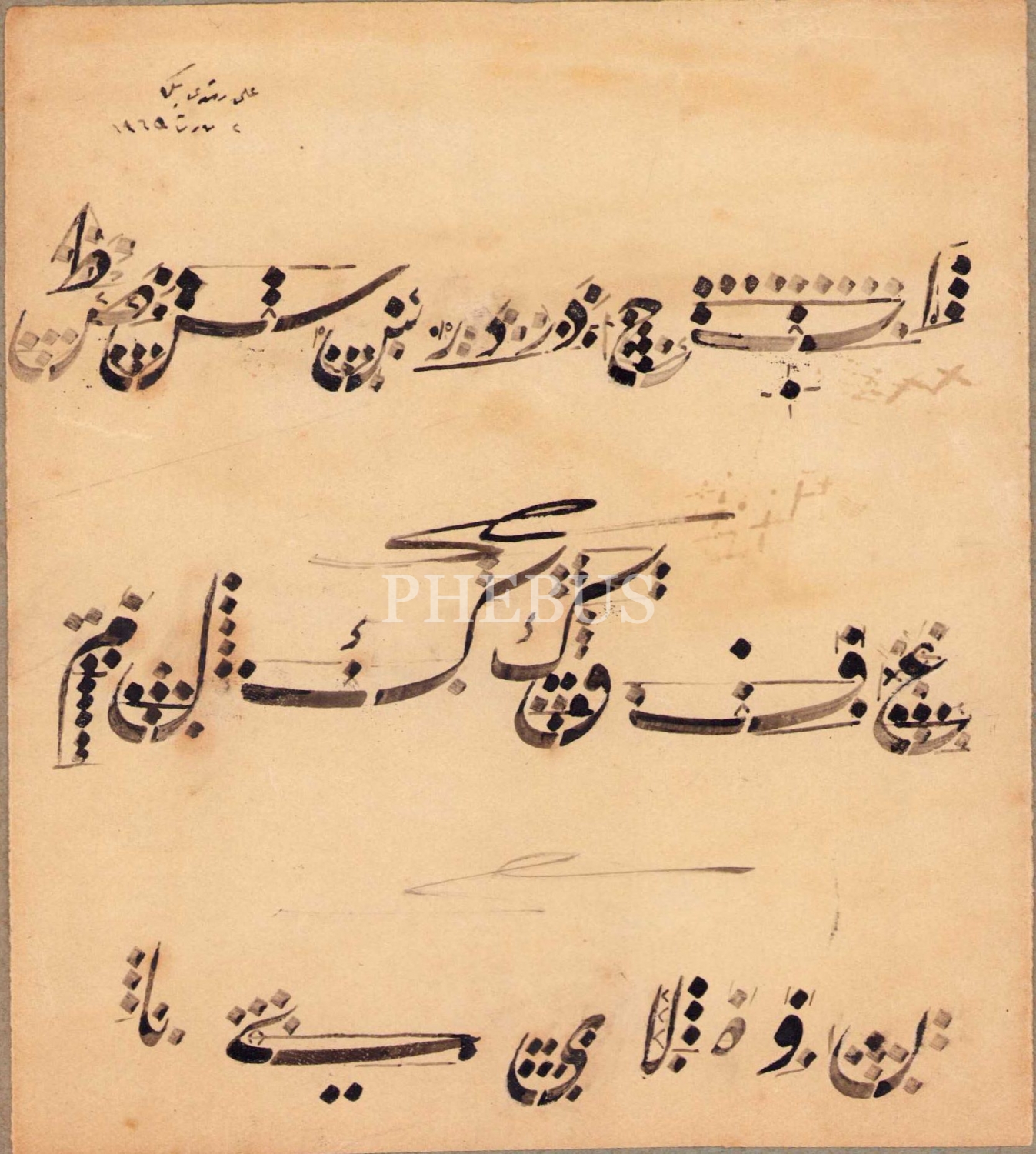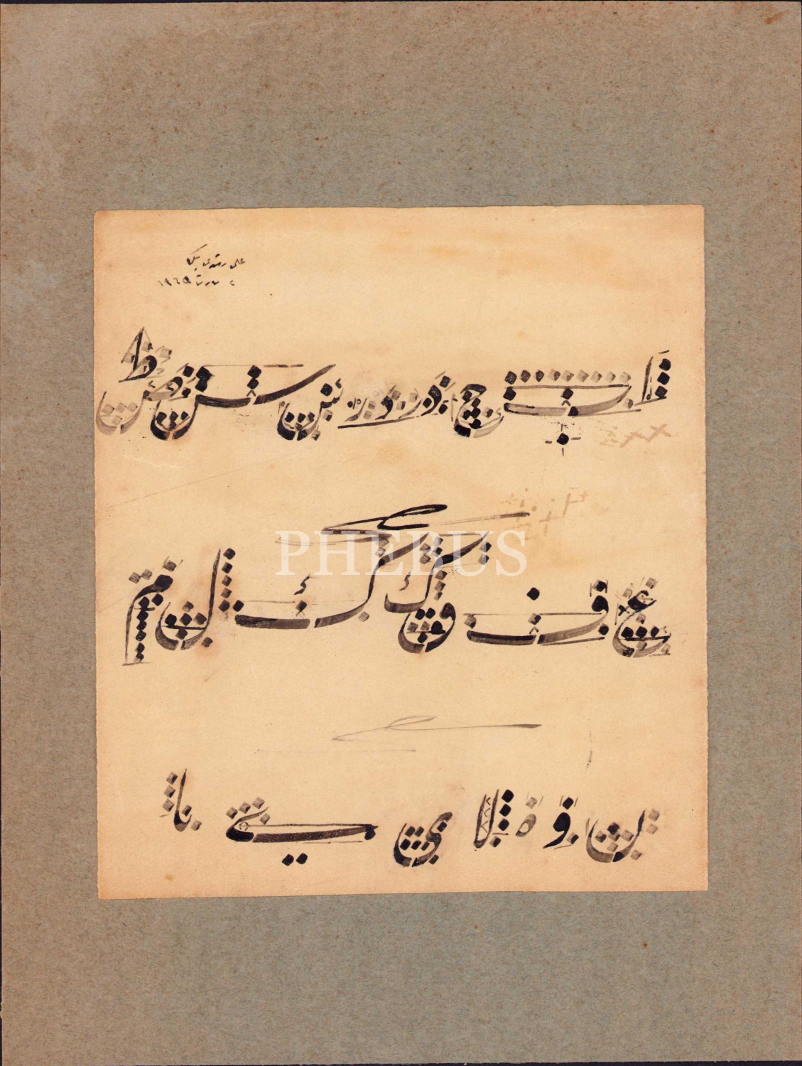 Talik Hurufat meşk, üst köşede Ali Rüşdi Bey yazılı, 1925 tarihli, 14x16 cm