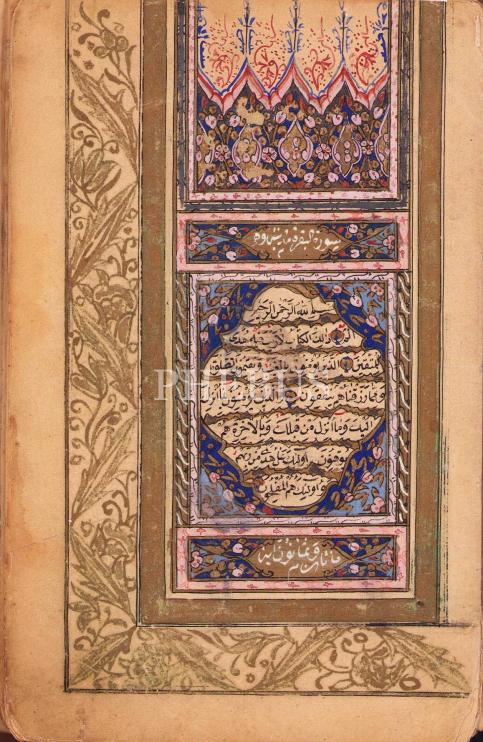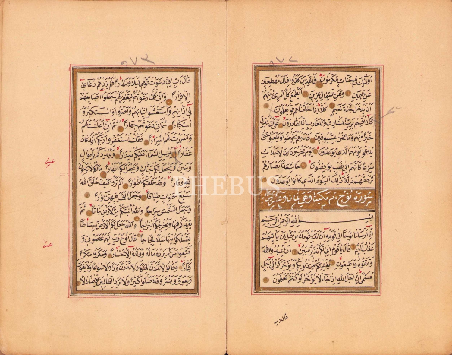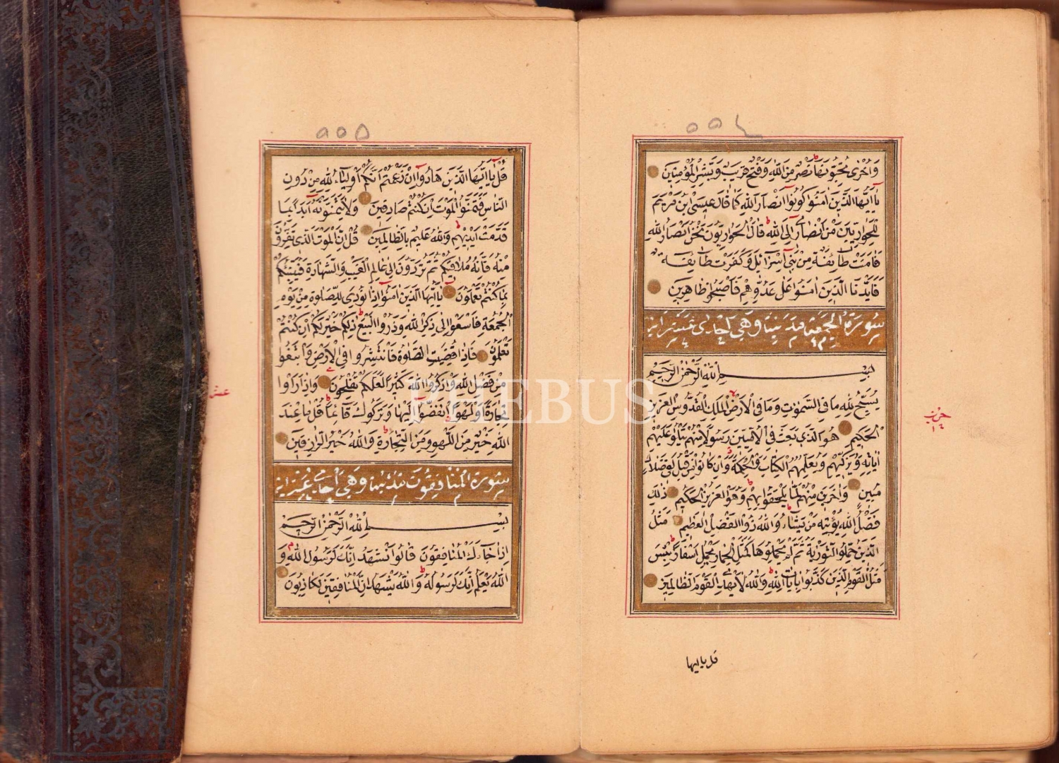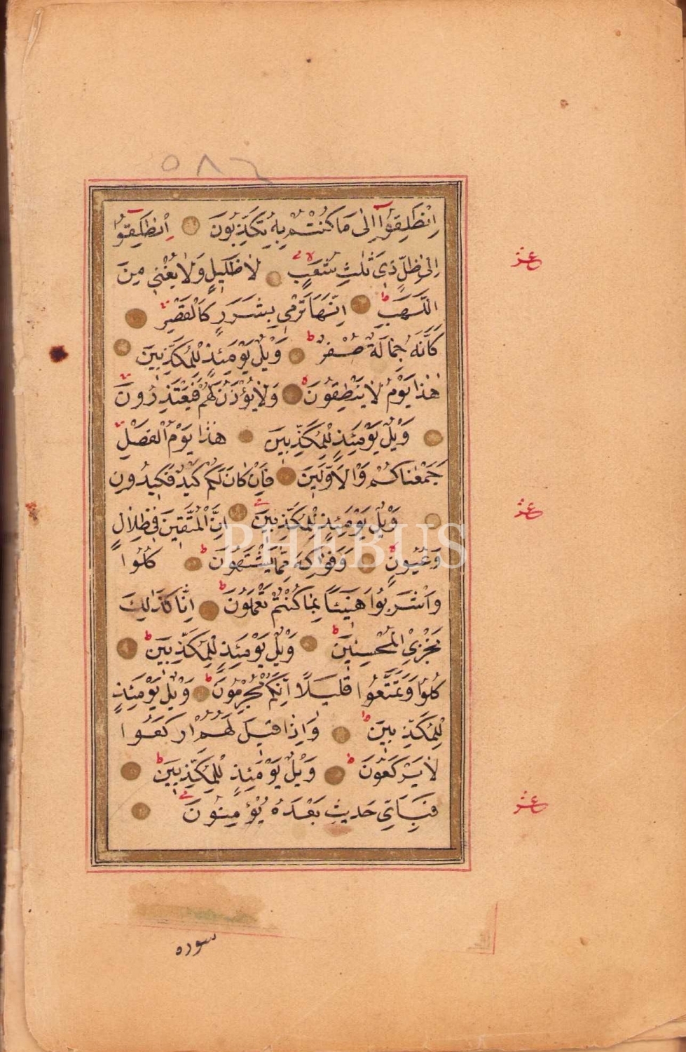 El Yazması Kuran-ı Kerim, kahverengi deri cildinde, cildi haliyle, Bakara Suresi'nden Mürselat Suresi'ne kadar eksikleriyle, Nesih, 10x17 cm
