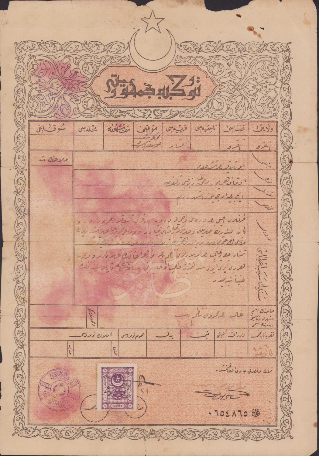 Ankara'ya ait Osmanlıca tapu senedi, 1926 tarihli, Osmanlıca, pullu damgalı, 22x32cm