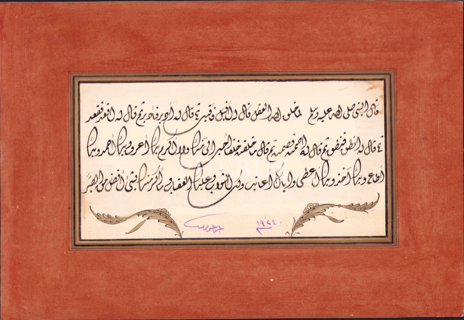 Divani yazı, Hadis-i Şerif, tükenmez kalemle "Ahmed Cevdet" ketebeli, 1924 tarihli, 24x12 cm