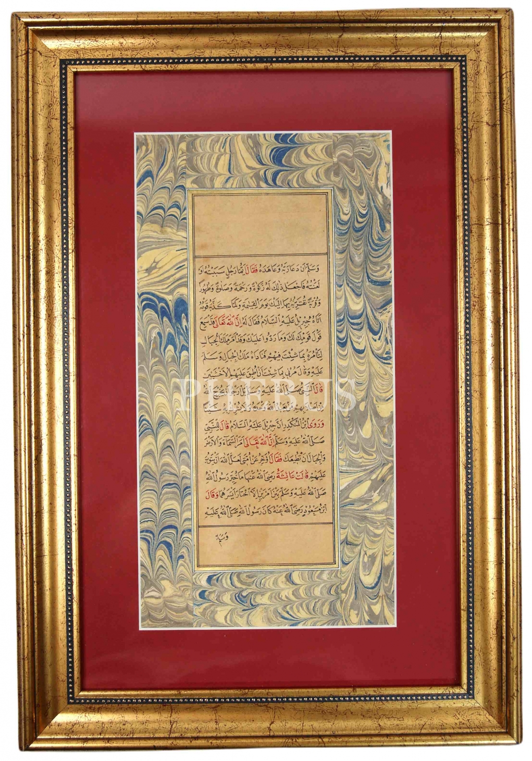 Nesih yazı, ebrulu çerçeveli, 8x23 cm