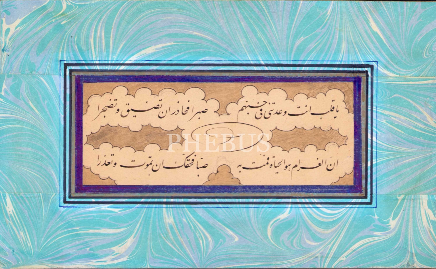 Talik kıta, İbnü'l Fârız'ın divanından, ebrulu, 16x6 cm