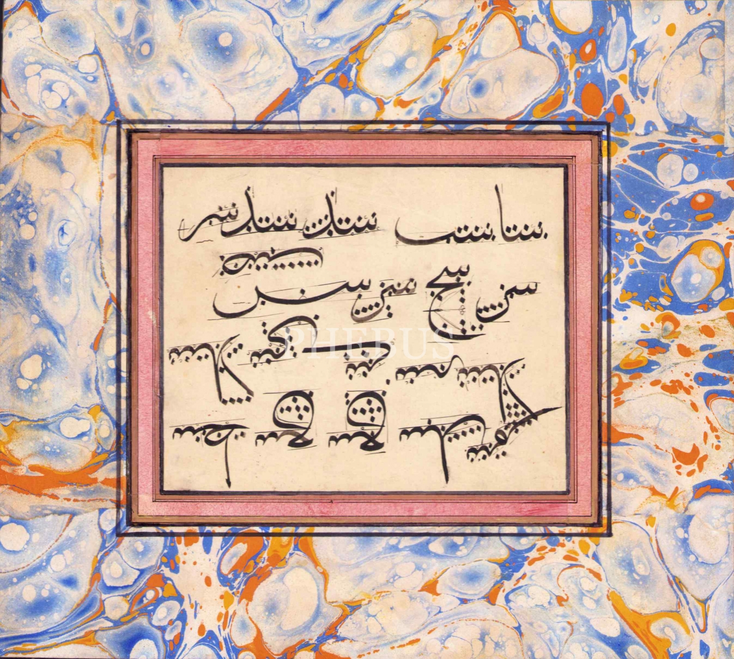 Sülüs karalama, ebru pervazlı, 13x10 cm
