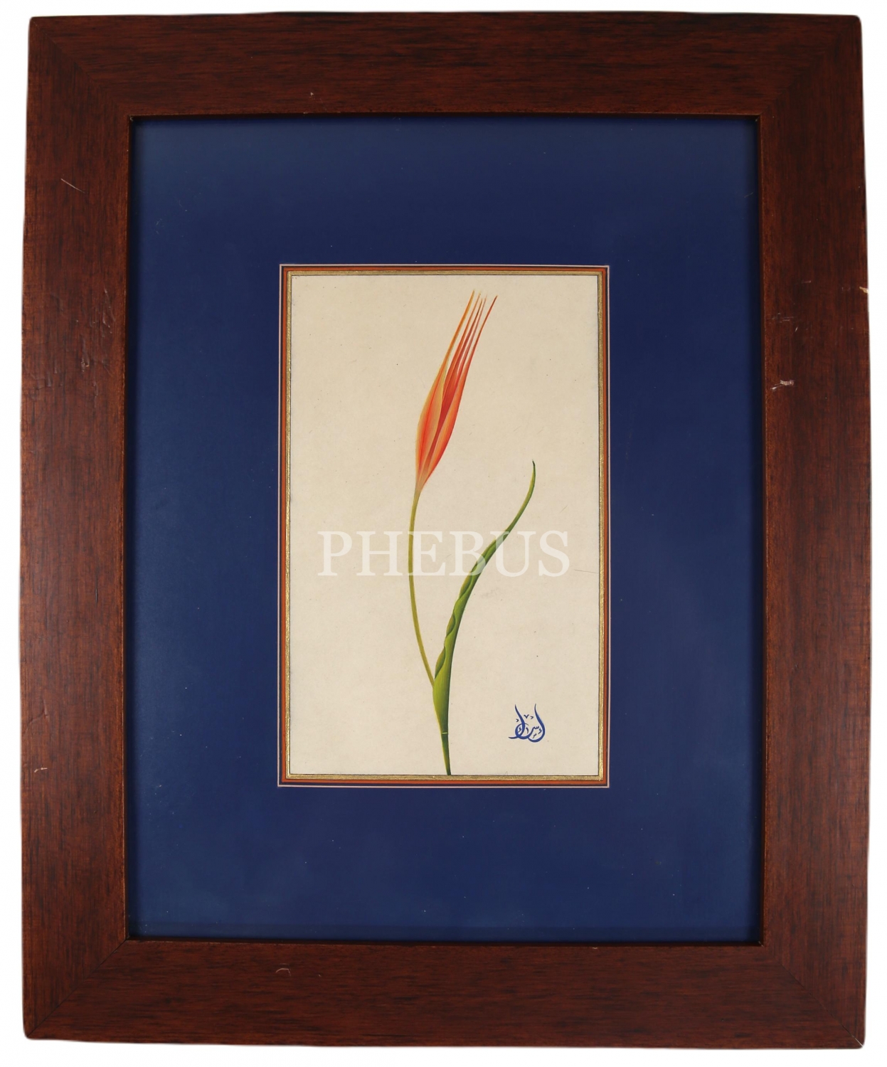 Lale Tezhip, Esra Karaduman imzalı, çerçeveli, 9x15 cm