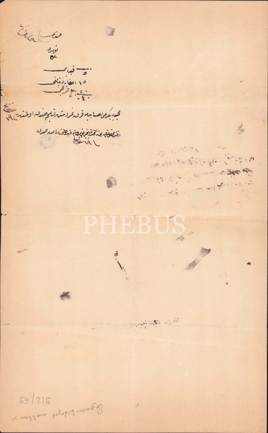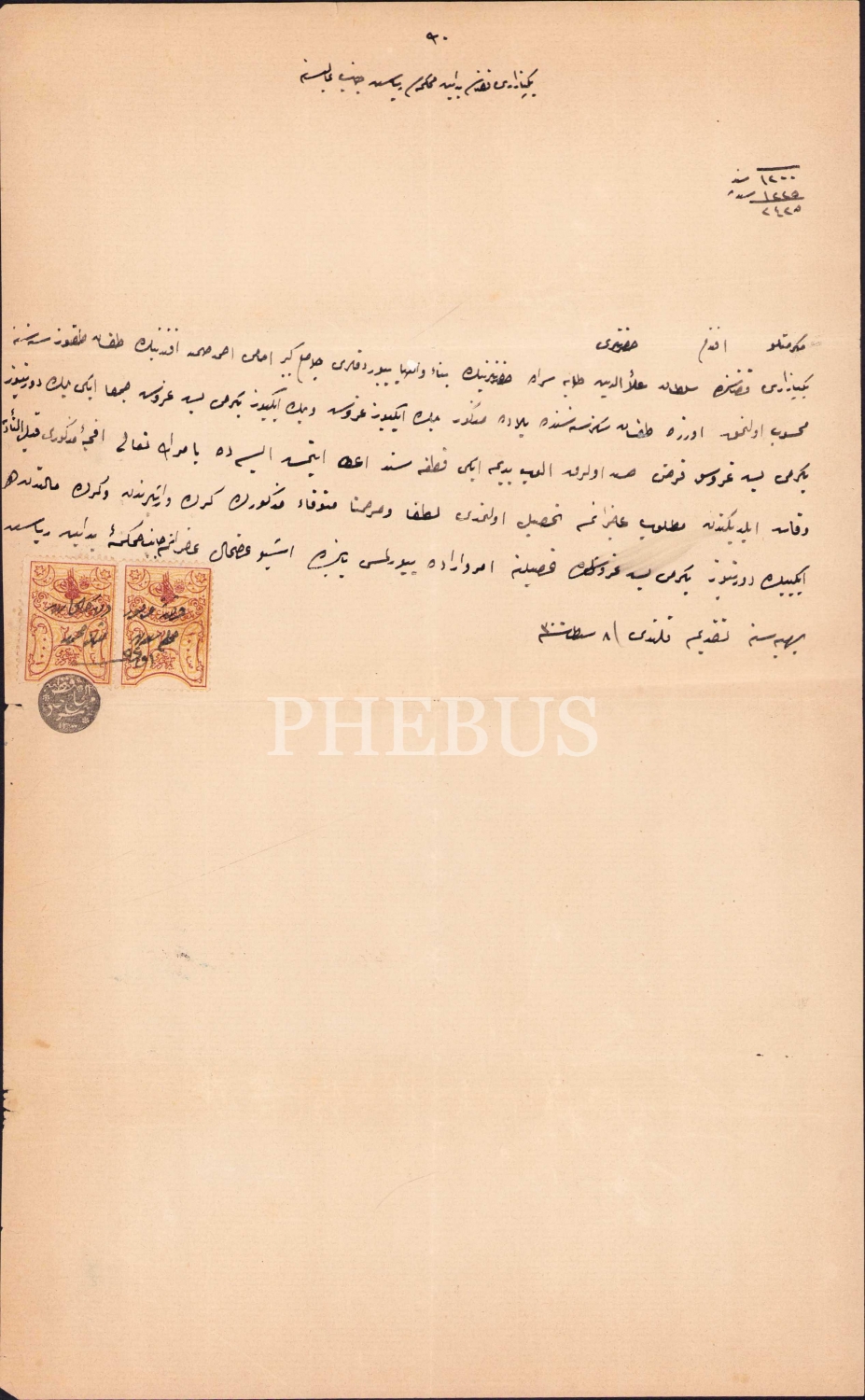 Beypazarı Bidayet Mahkemesine yazılmış Sultan Alaaddin Cami imamı Ahmet Efendiye maaşlarının ödendiği ve bu sırada imam efendinin vefat ettiği hakkındaki 1300 tarihli Osmanlıca doküman, 21x36 cm