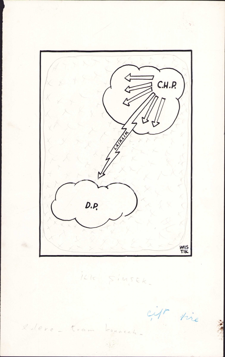 Mıstık [Mustafa Eremektar] imzalı, İlk Şimşek konulu karikatür çizim, 17x27 cm