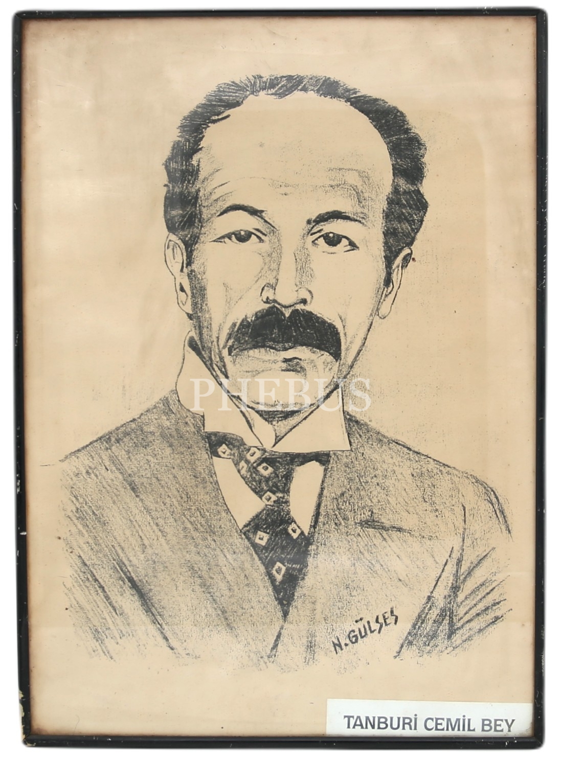 Necip Gülses çizim Tanburi Cemil Bey, 29x41 cm