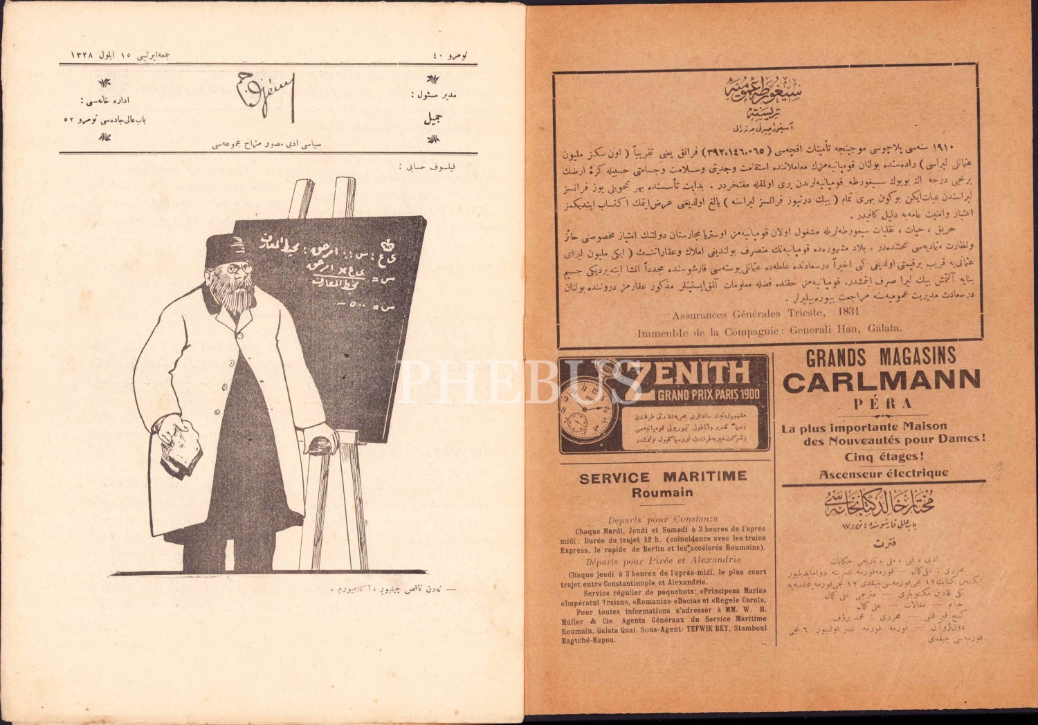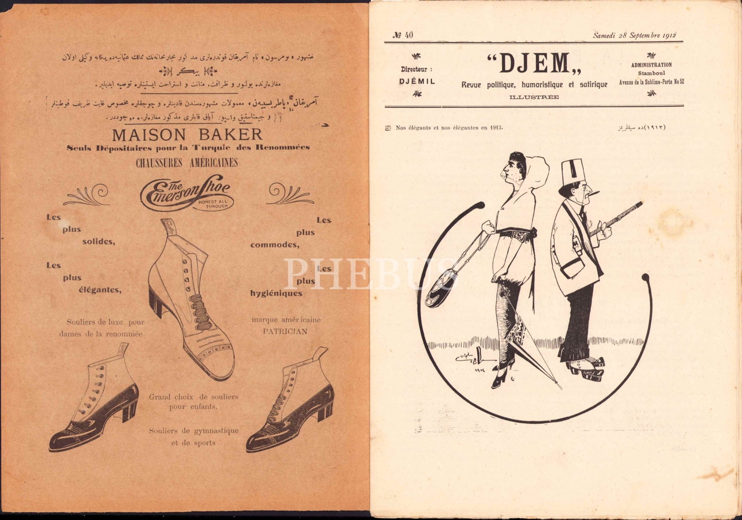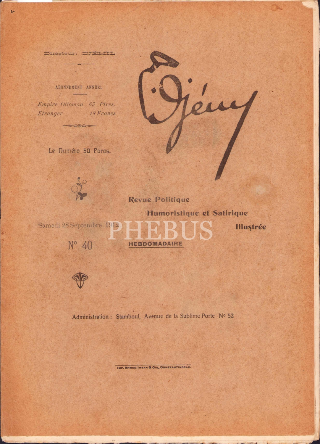 Cem - mizah mecmuası, Mesul müdür: Cemil, Ahmed İhsan ve Şürekası Matbaası, 15 Eylül 1328, Osmanlıca - Fransızca, resimli, reklamlı, 12 sayfa, 20x28 cm