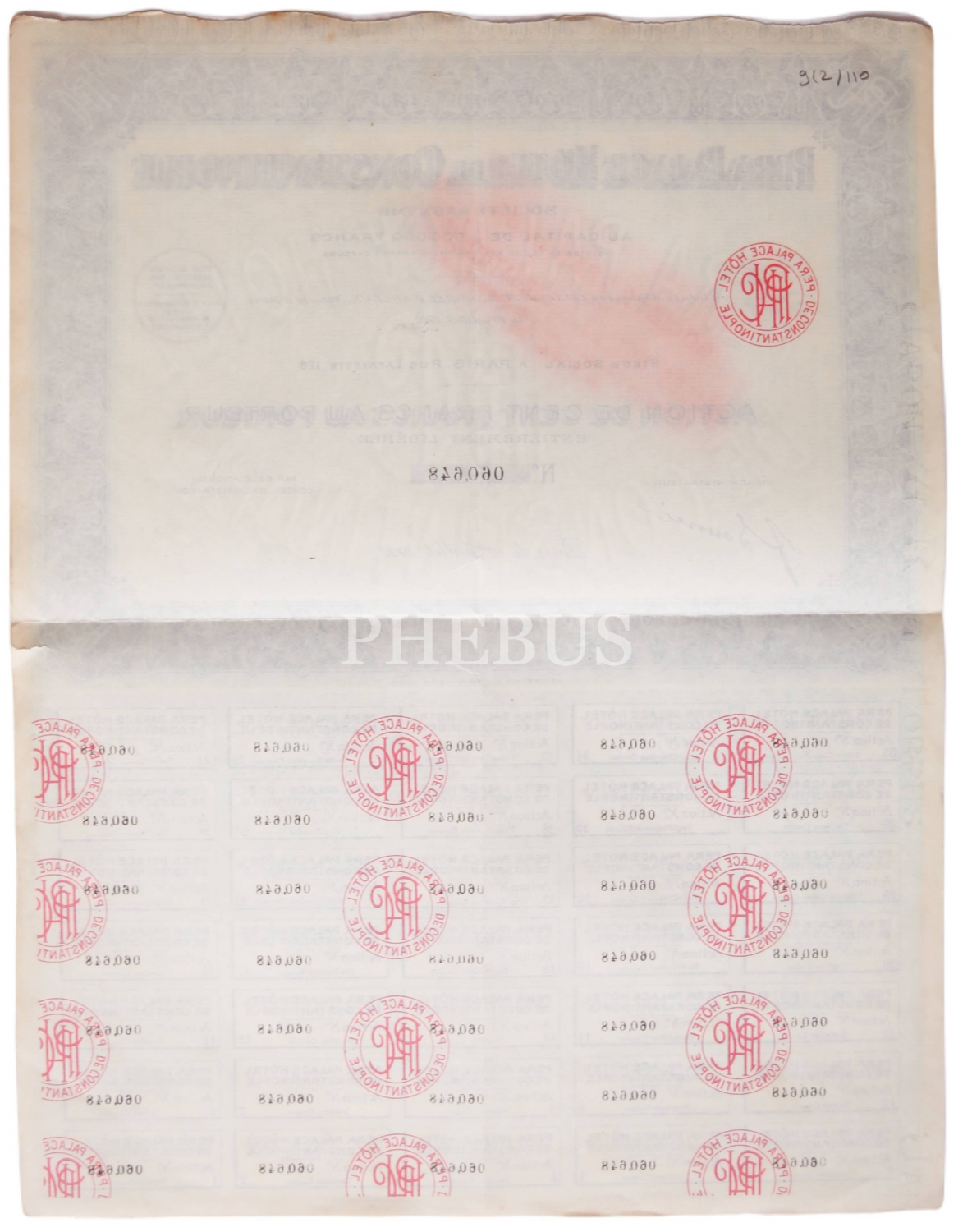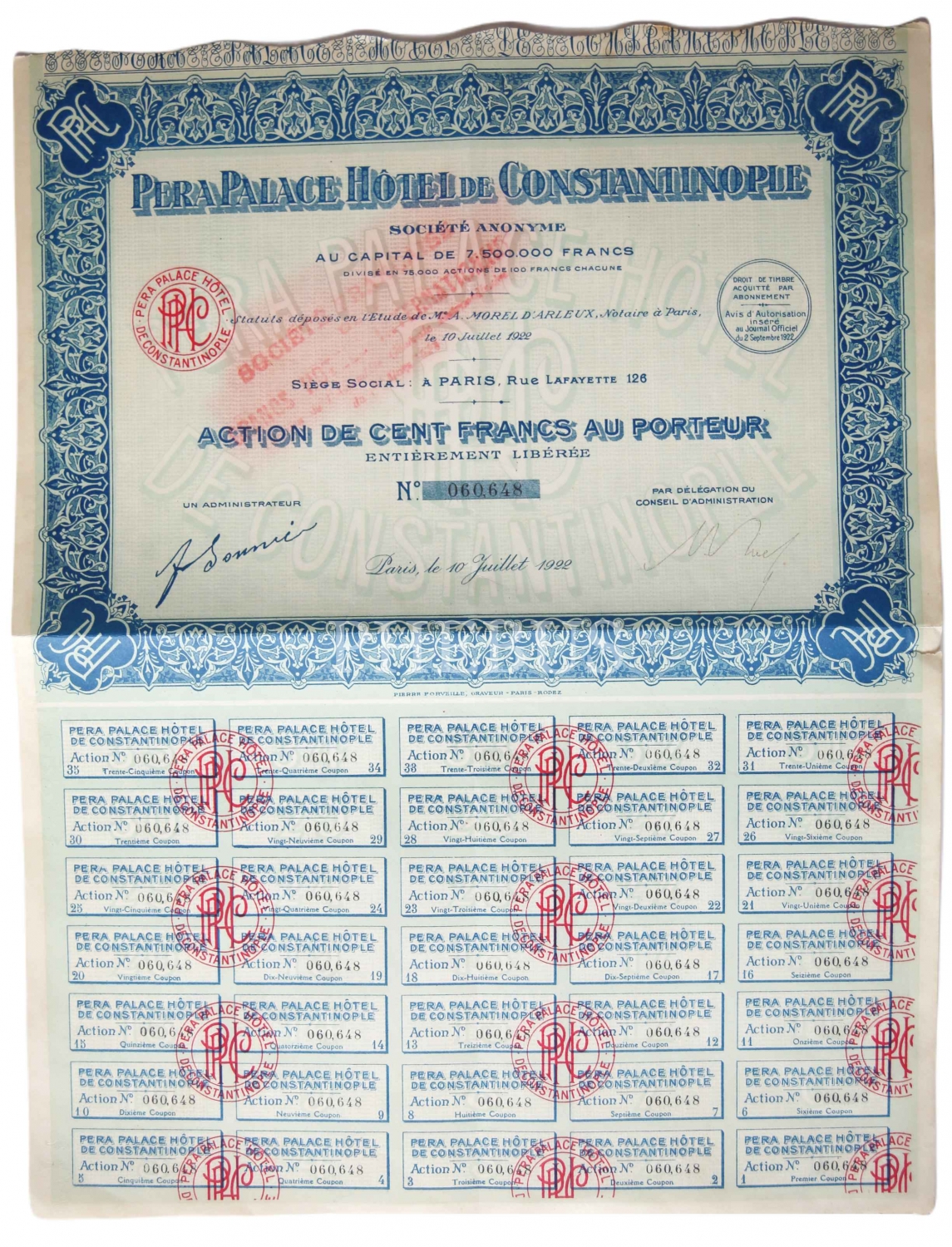 Pera Palace Hotel Constantinople, Fransızca hisse senedi, 30x40 cm
