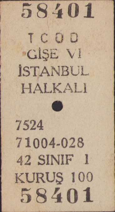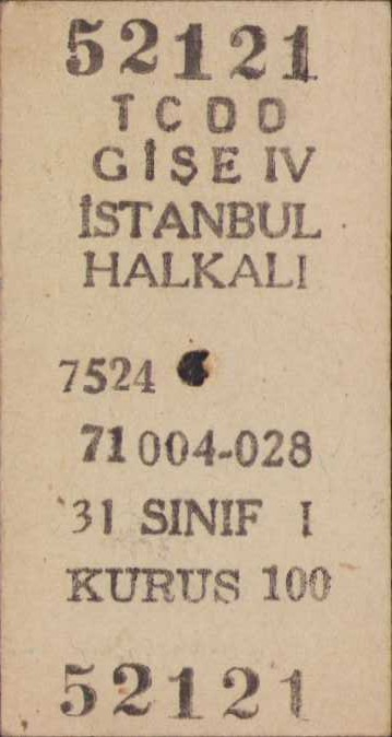 TCDD İstanbul Florya ve İstanbul Halkalı tren biletleri, 3 adet, ederi 100 kuruş, 1972 tarihli, 6x3cm