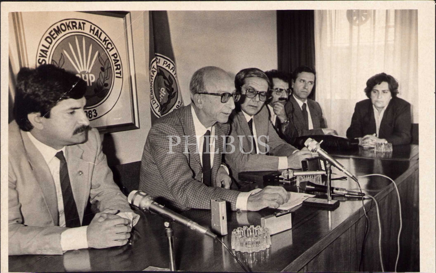 Sosyal Demokrat Halkçı Partisinde konuşma yapan Fizikçi Erdal İnönü, 17x11 cm