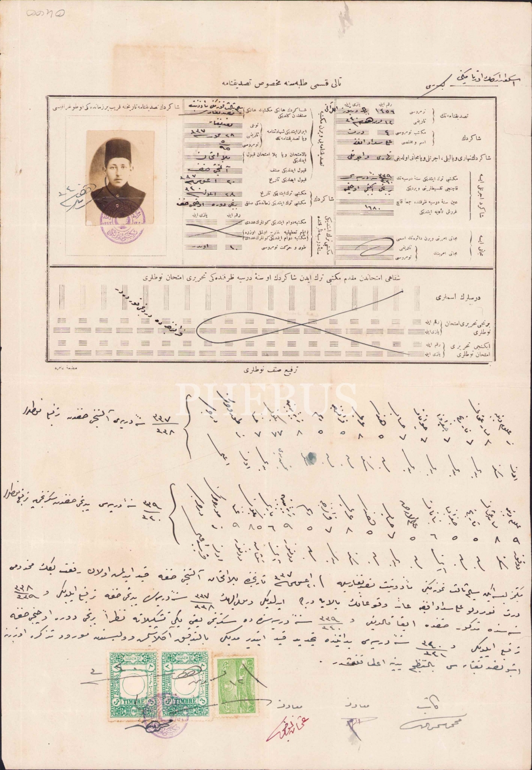 Osmanlıca tasdikname, Üsküdar Erkek Orta Mektebi, 1333 tarihli, 28x40 cm