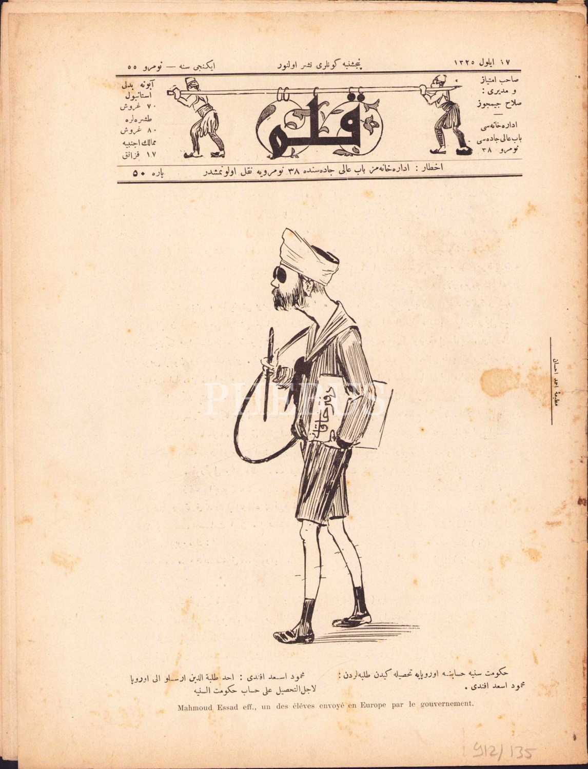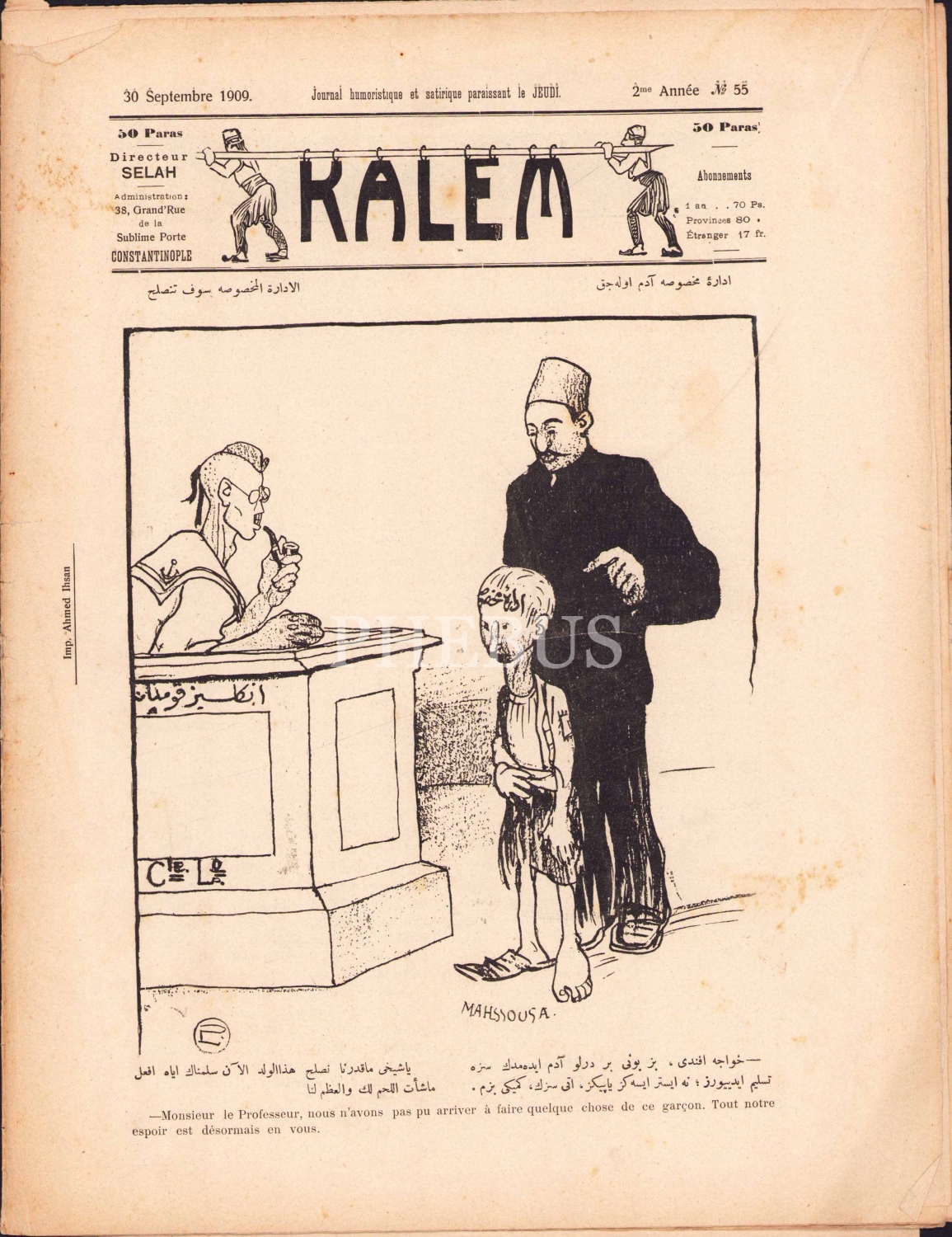Osmanlıca - Fransızca, Kalem mizah mecmuası, 30 Eylül 1909, 14 sayfa, 21x27 cm